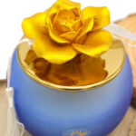 Questa bomboniera candela profumata è pensata per lasciare un ricordo raffinato e prezioso. Il suo design sofisticato e la decorazione floreale in porcellana oro la rendono perfetta per matrimoni e anniversari. Inoltre, grazie alla sua eleganza, è ideale anche per battesimi, comunioni e cresime.