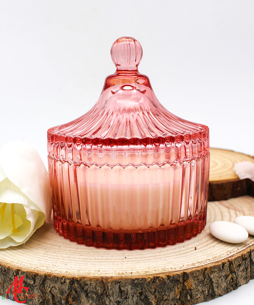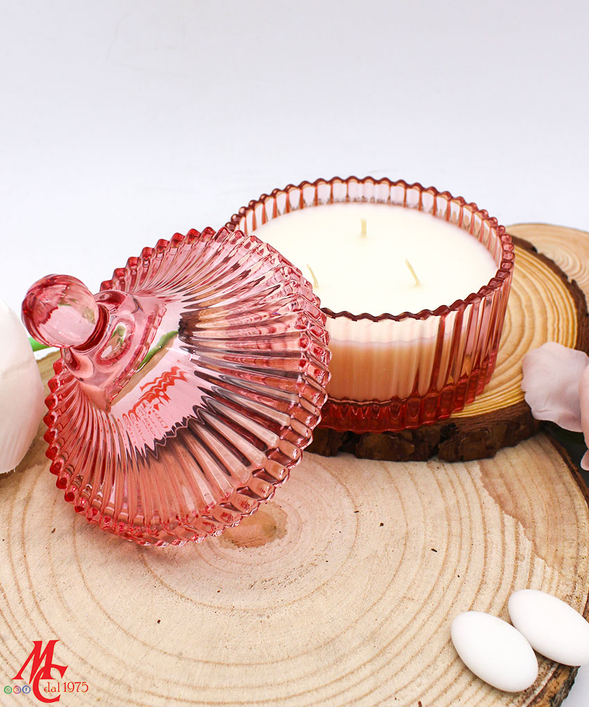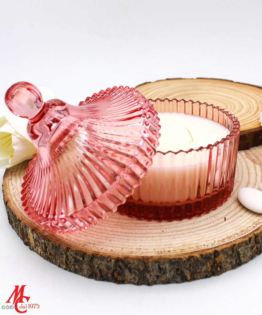 Bomboniera Candela con Contenitore in Vetro Rosa