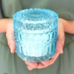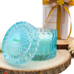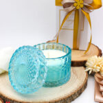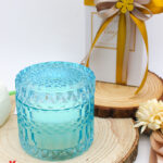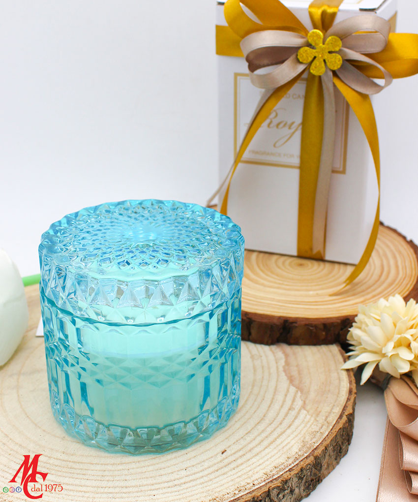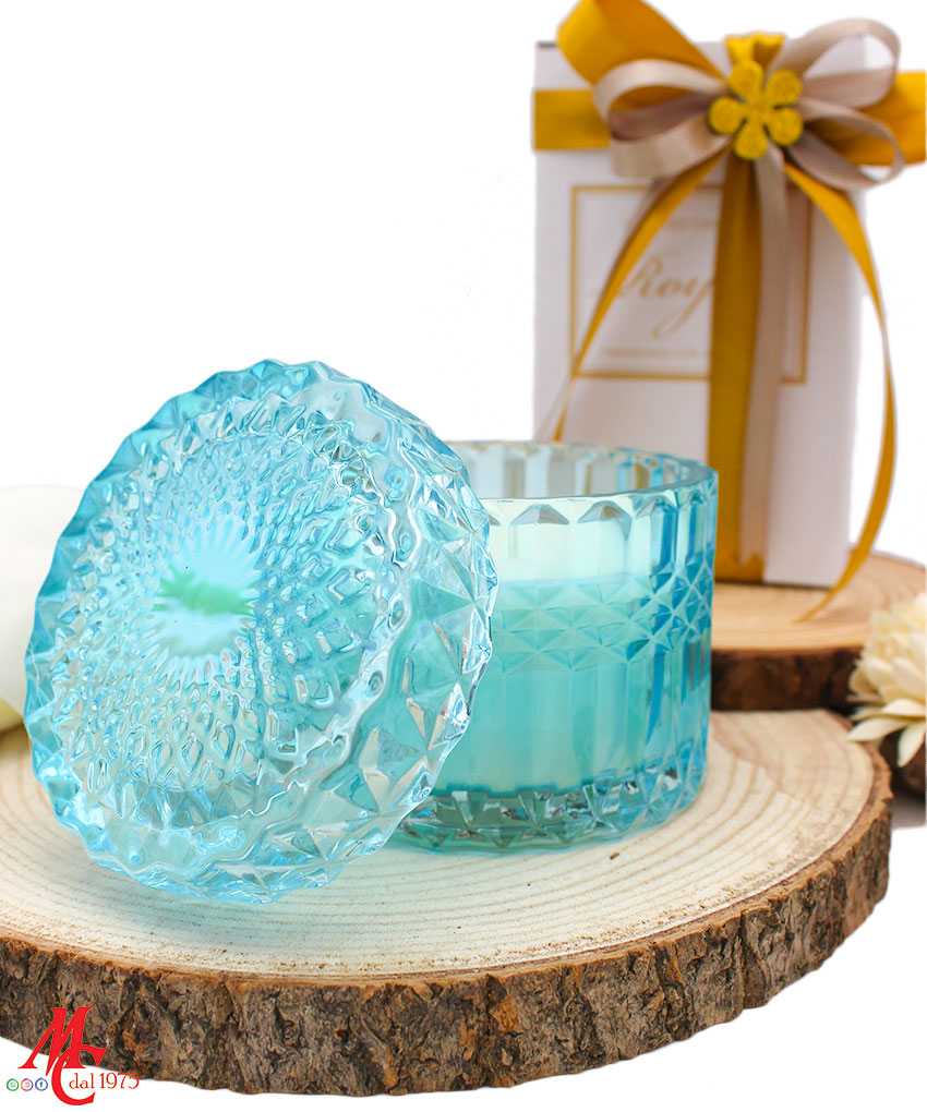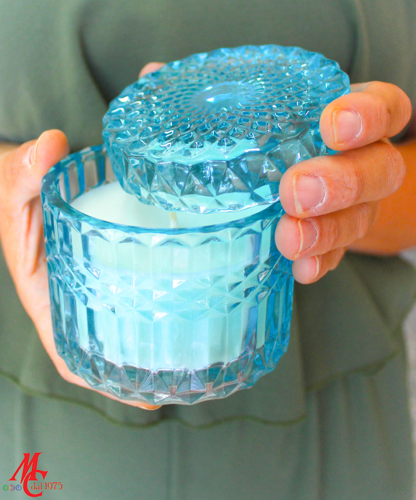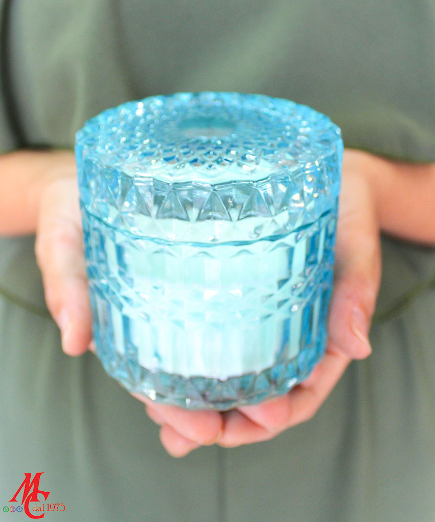 Il design tondo del contenitore in vetro celeste della Bomboniera Candela è studiato per essere visivamente accattivante e funzionale. Il colore celeste del vetro trasmette una sensazione di calma e serenità, rendendo questa candela un complemento perfetto per qualsiasi arredamento.