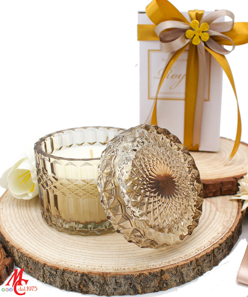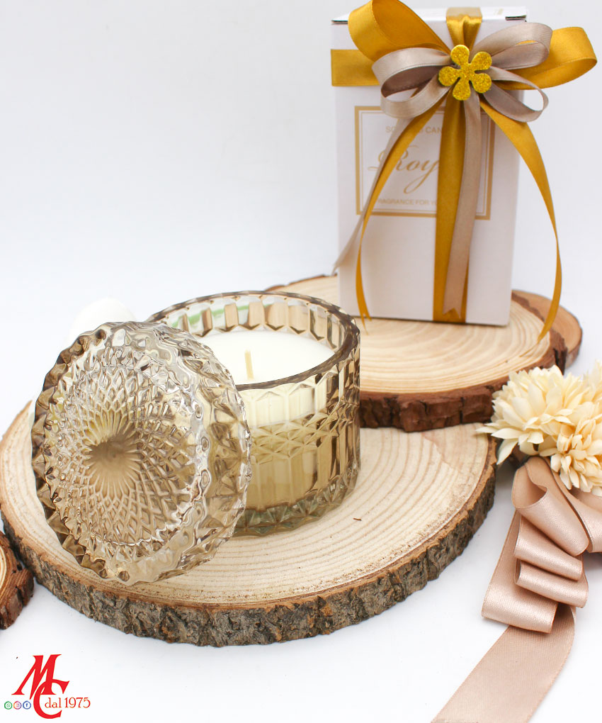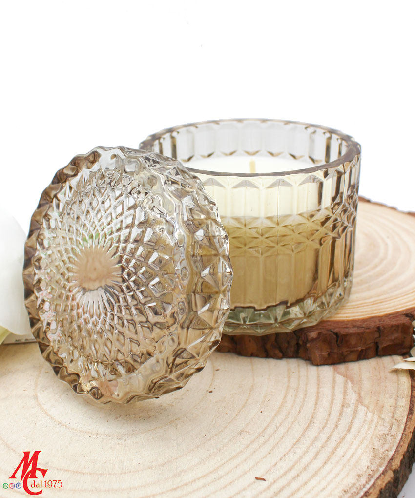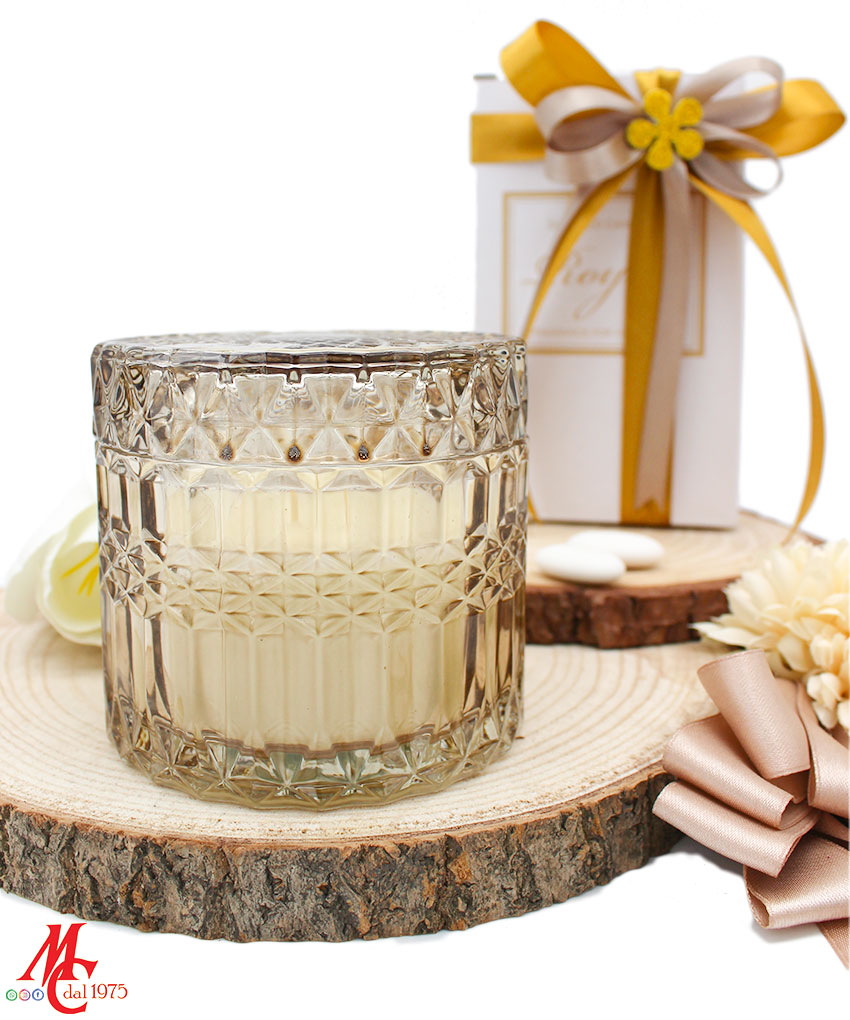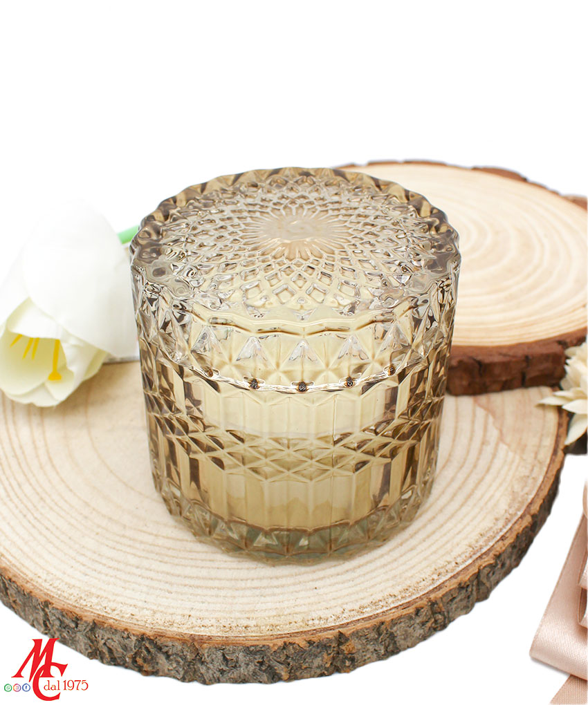 - Modello: Bomboniera Candela con Contenitore in Vetro Tondo Tortora