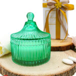 Ogni Bomboniera Candela con Contenitore in Vetro Verde viene fornita completa di confezione, pronta per essere regalata. La confezione curata nei minimi dettagli assicura che la bomboniera sia non solo un prezioso ricordo per gli ospiti, ma anche un elegante elemento decorativo per la tua celebrazione.
