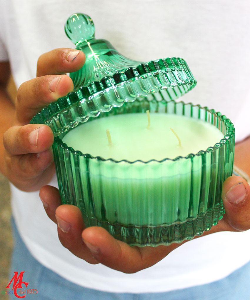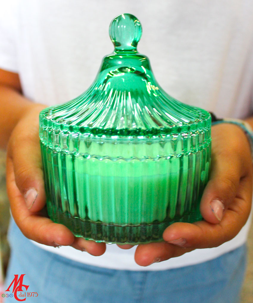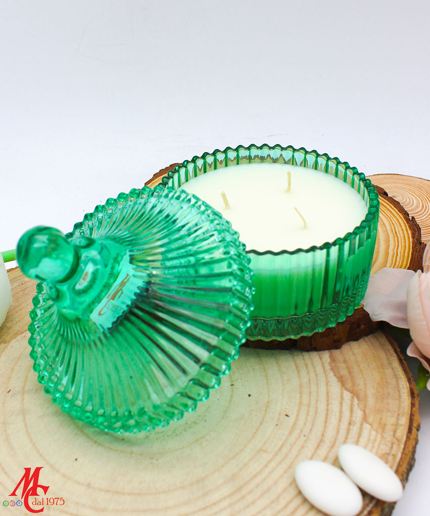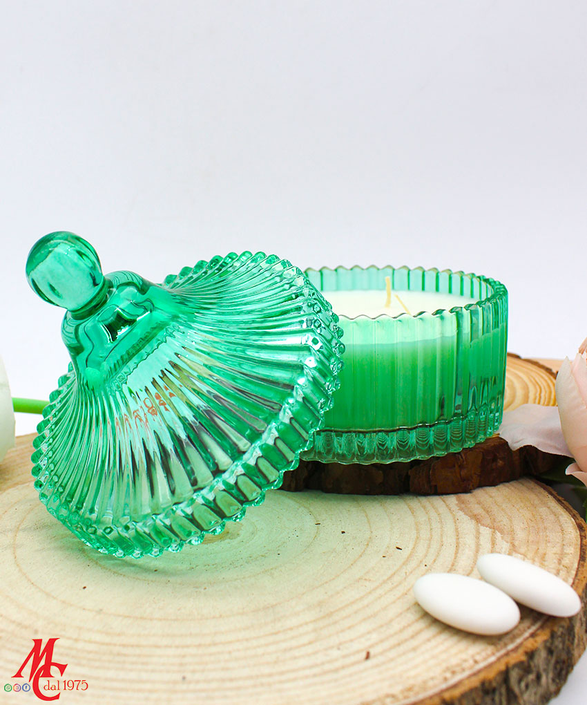 - Modello: Bomboniera Candela con Contenitore in Vetro Tondo Verde