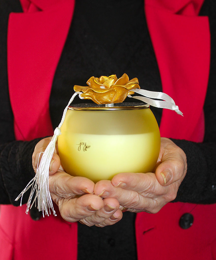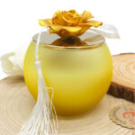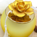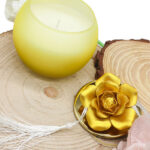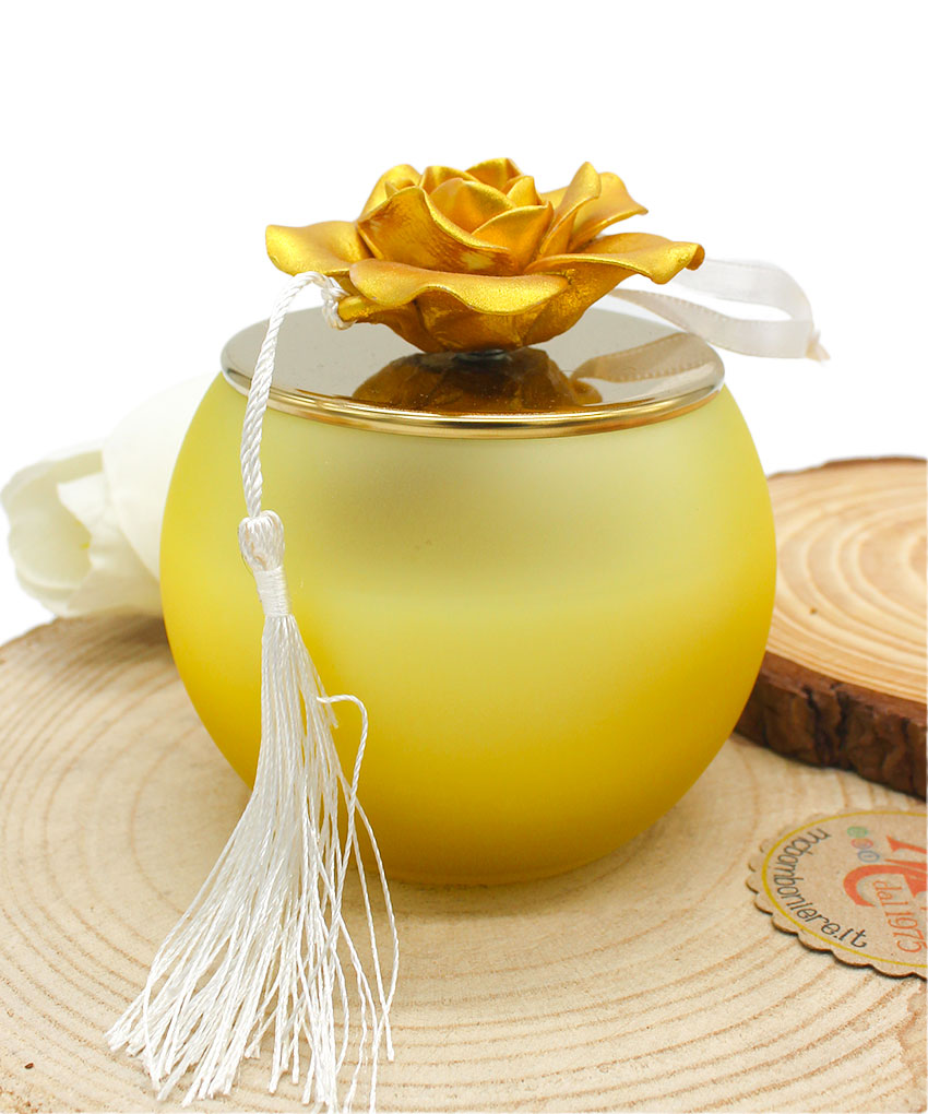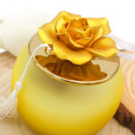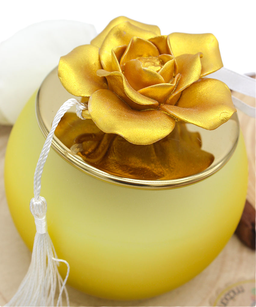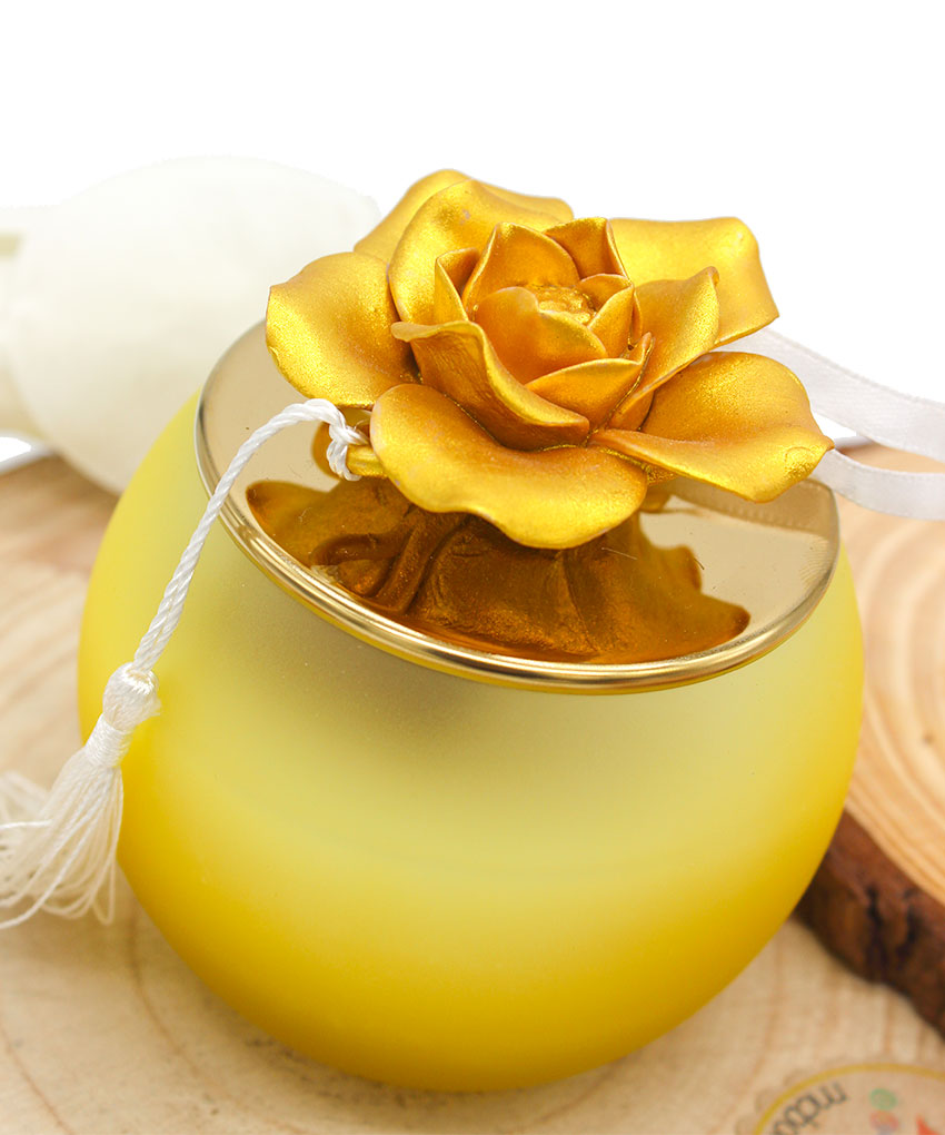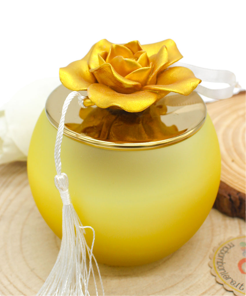 Se stai cercando una bomboniera elegante e raffinata, questa candela profumata con contenitore sferico in vetro è la scelta perfetta. Il suo tappo è impreziosito da una splendida rosa in porcellana color oro, che aggiunge un tocco di lusso e stile. Ideale per matrimoni, anniversari, battesimi, comunioni e cresime, è un ricordo speciale da donare ai tuoi ospiti.