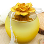 ✅ Materiale: Contenitore in vetro con tappo decorato da fiore in porcellana oro