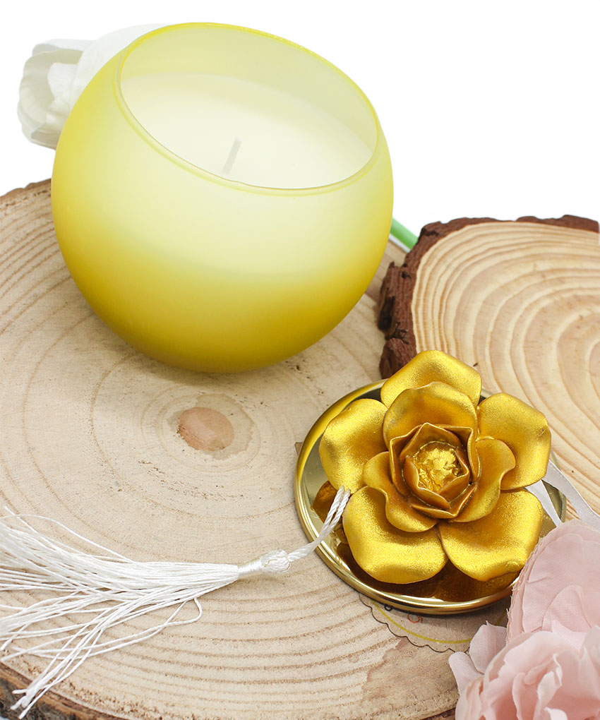 Bomboniera Candela con Contenitore Sferico e Fiore in Porcellana Oro ✨