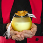 Questa bomboniera candela profumata è pensata per lasciare un ricordo raffinato e prezioso. Il suo design sofisticato e la decorazione floreale in porcellana oro la rendono perfetta per matrimoni e anniversari. Inoltre, grazie alla sua eleganza, è ideale anche per battesimi, comunioni e cresime.