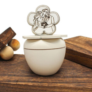 Grazie alle dimensioni compatte di 7 × 9 cm, questa bomboniera si adatta perfettamente a qualsiasi allestimento, diventando un ricordo elegante da conservare e riutilizzare nel tempo come elemento d’arredo.