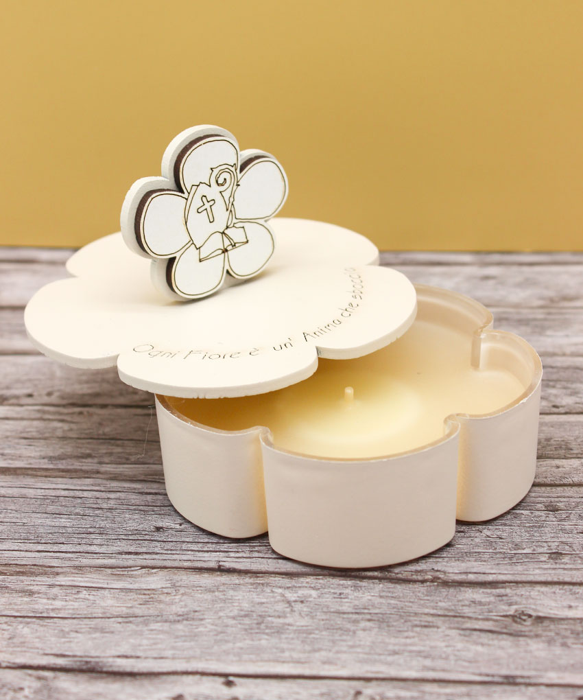 La Bomboniera Candela con contenitore grande, impreziosita dal simbolo della Cresima, è una scelta elegante e significativa per celebrare questo importante sacramento con sobrietà e stile.