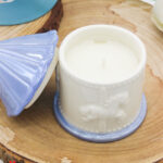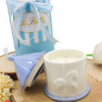 Bomboniera Candela in Soia con Giostrina in Porcellana Celeste – Confezione Inclusa