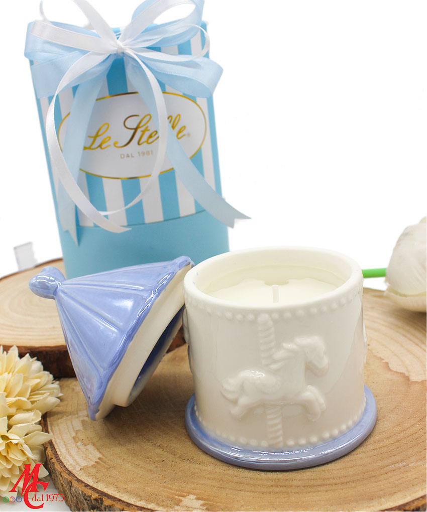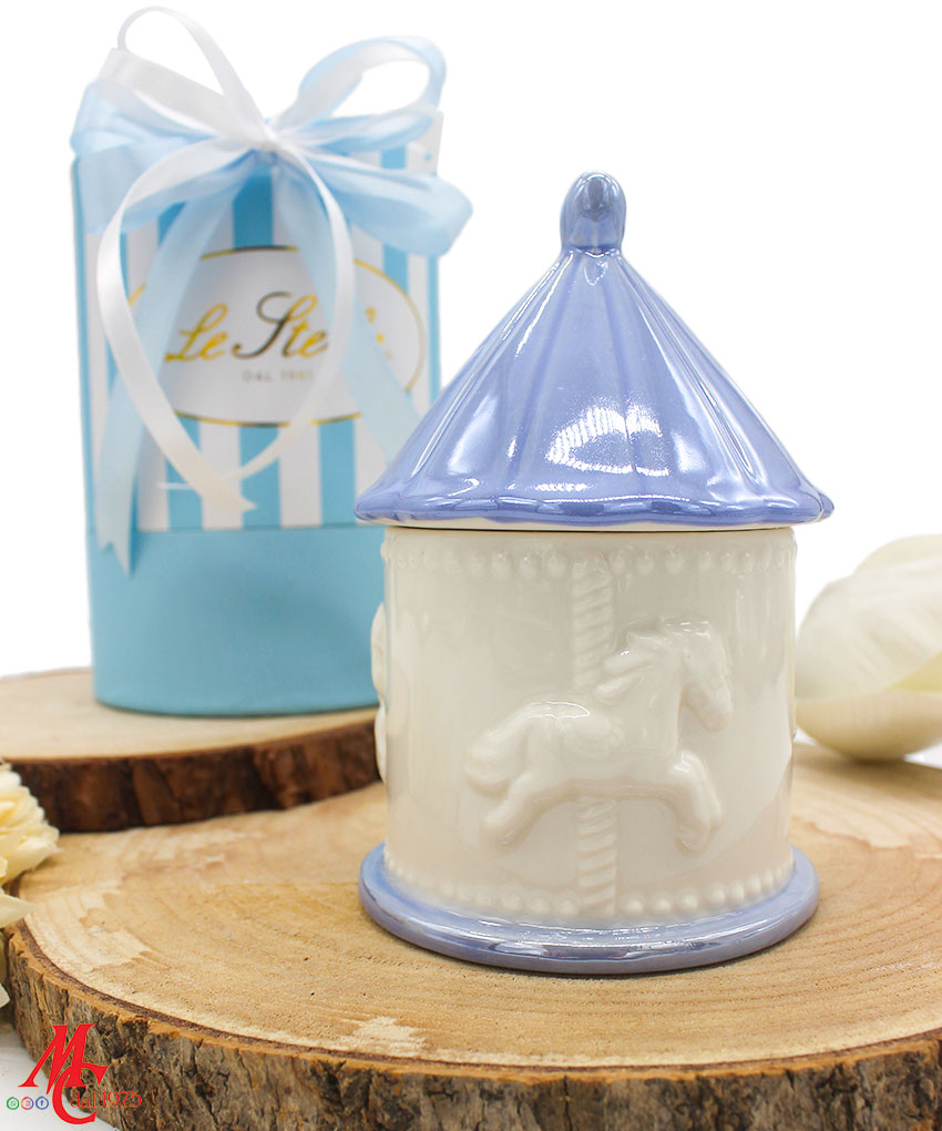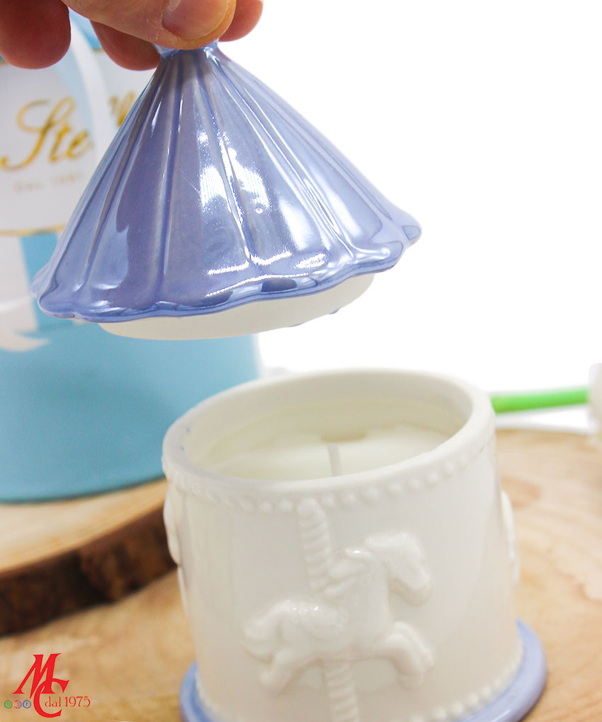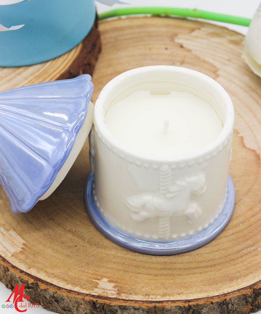 Bomboniera Candela in Soia con Giostrina in Porcellana Celeste