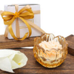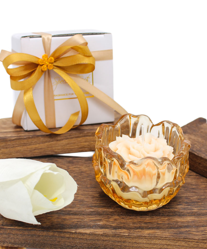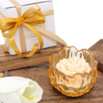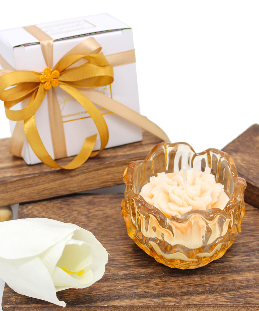Regala un tocco di raffinatezza con questa splendida bomboniera candela in vetro color ambra. Il suo interno cela una candela decorativa a forma di fiore, perfetta per creare un’atmosfera calda e accogliente. Un’idea regalo elegante e utile, ideale per matrimoni, battesimi, anniversari e altre occasioni speciali.