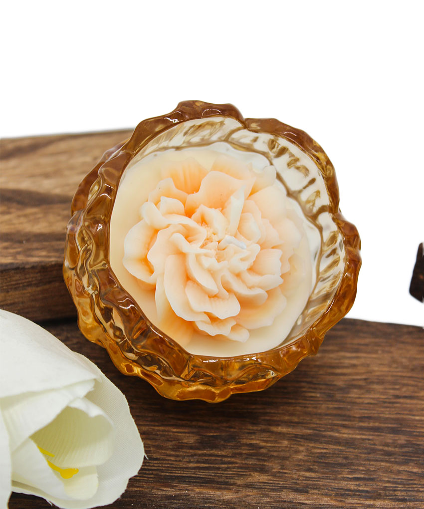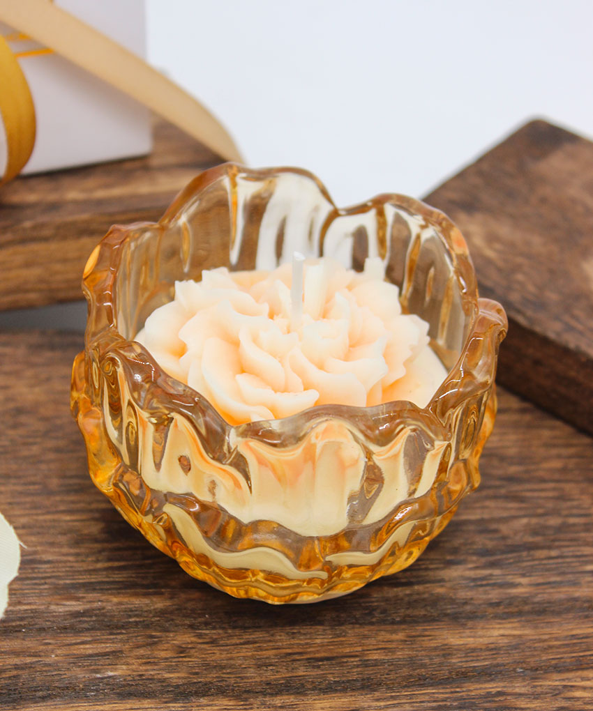 Bomboniera Candela in Vetro Ambra con Fiore – Eleganza e Atmosfera Unica ️✨