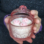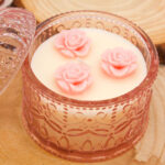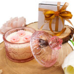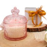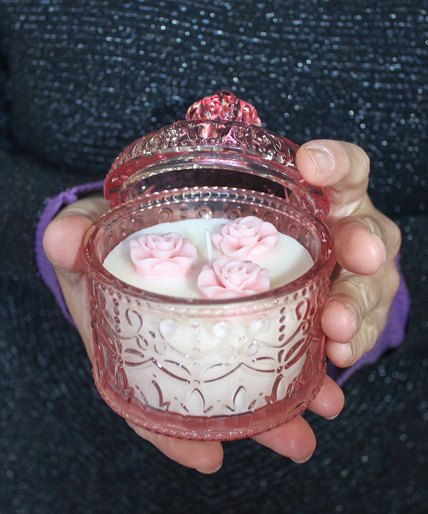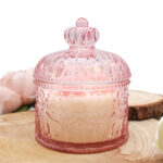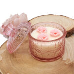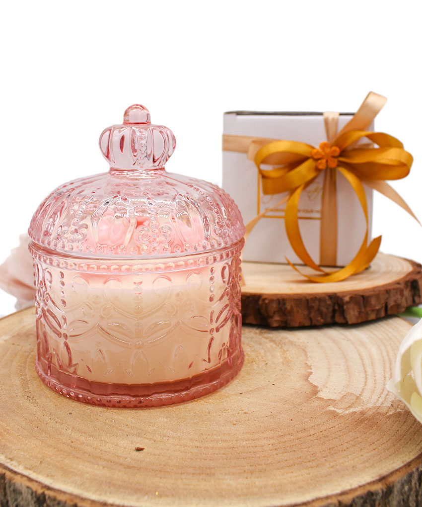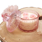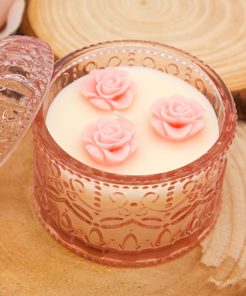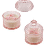 Bomboniera Candela in Vetro Rosa con Coperchio e Fiorellini ️