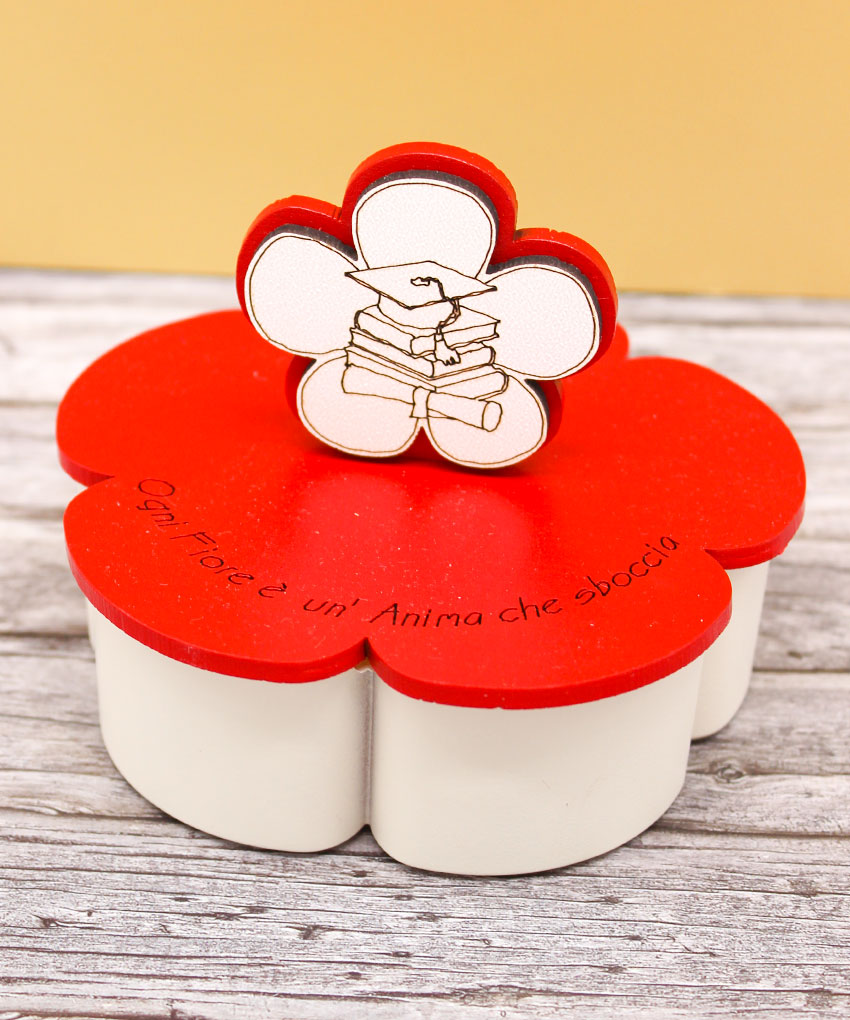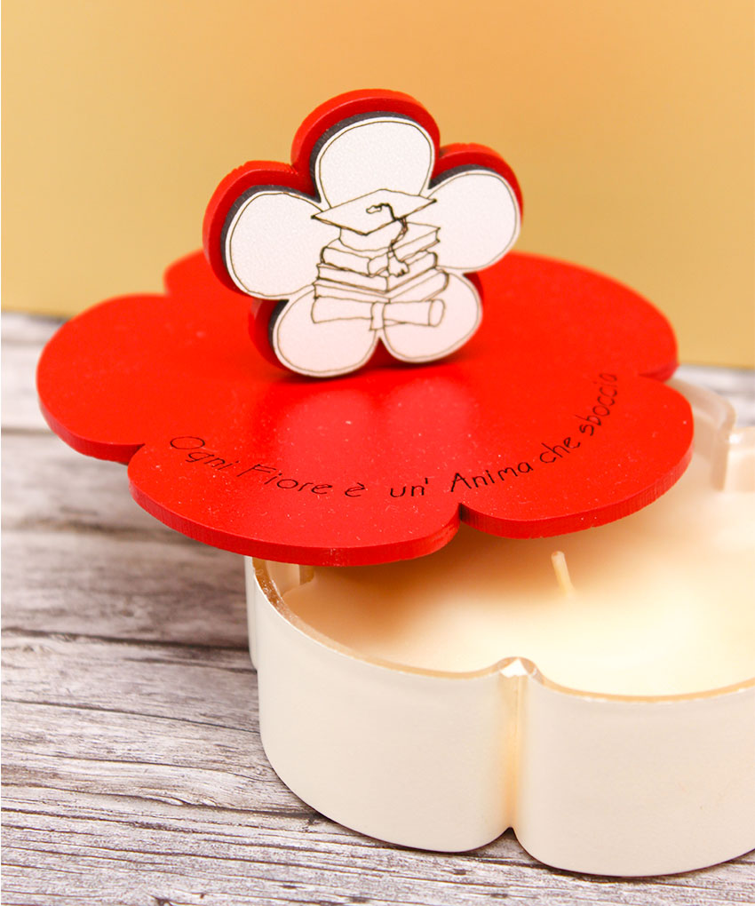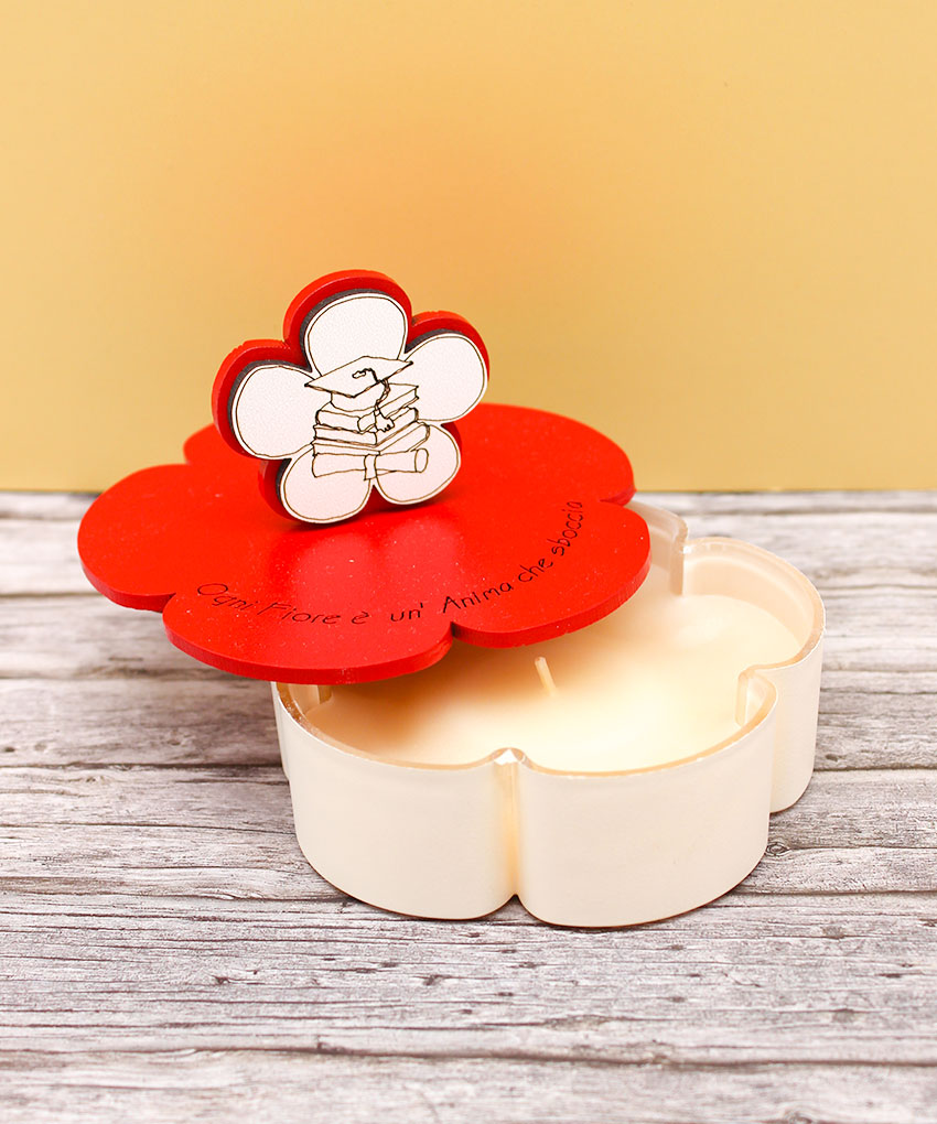 Bomboniera Candela Laurea con Contenitore e Coperchio – Rosso