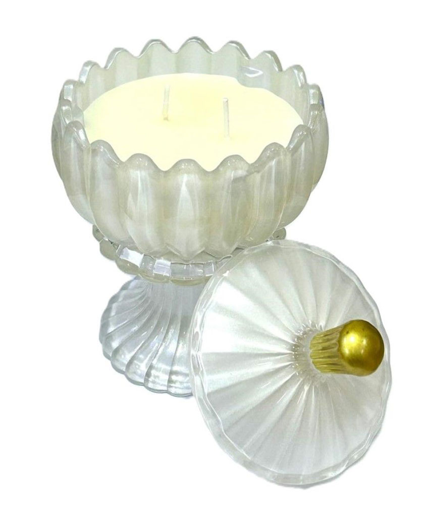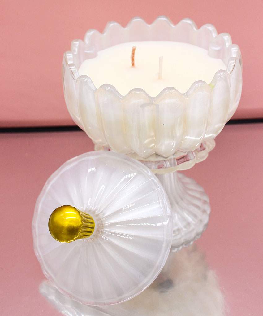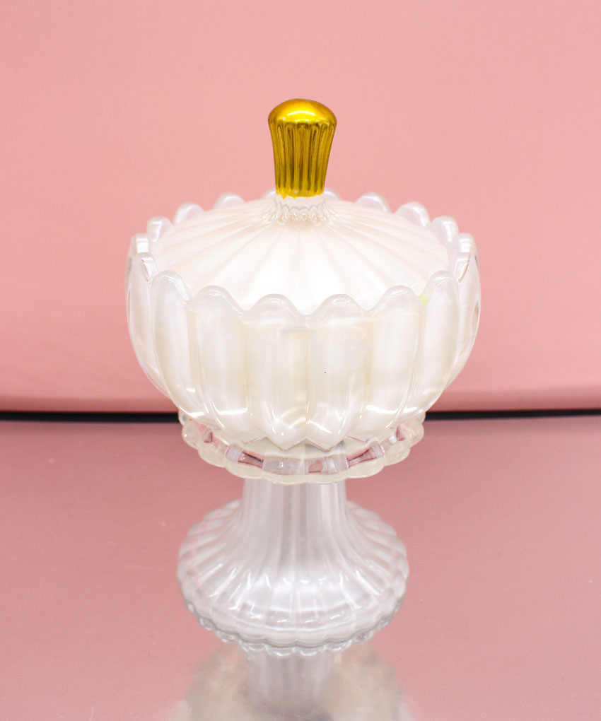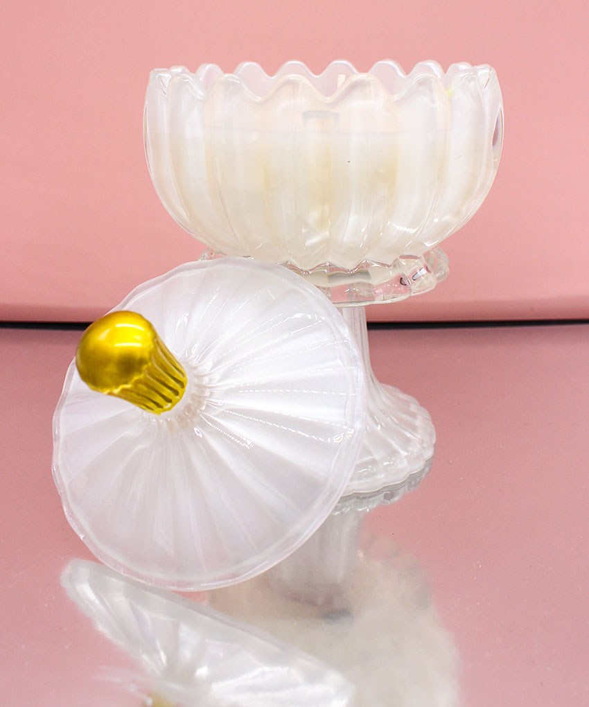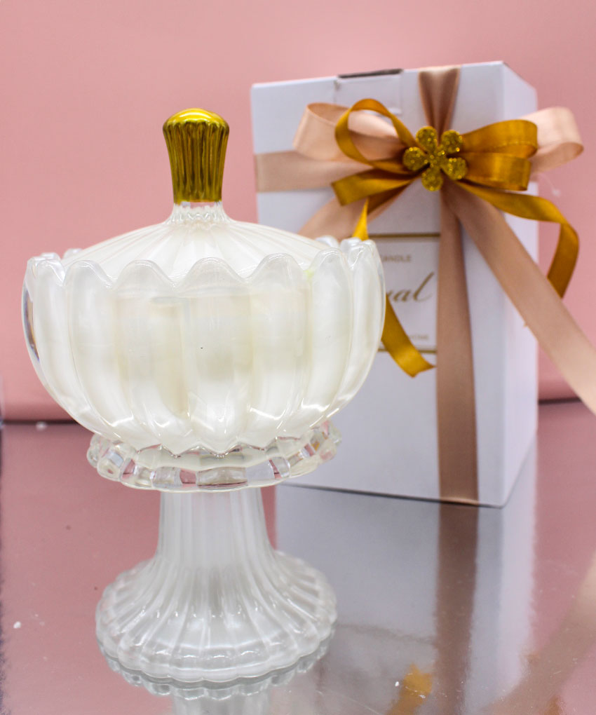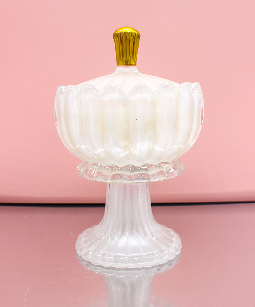 Bomboniera Candela Profumata con Alzatina in Vetro e Coperchio – Bianco