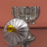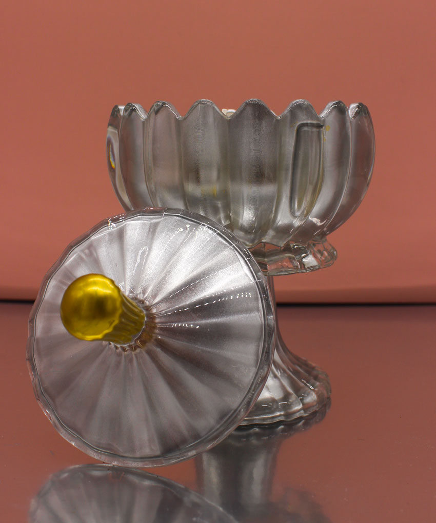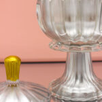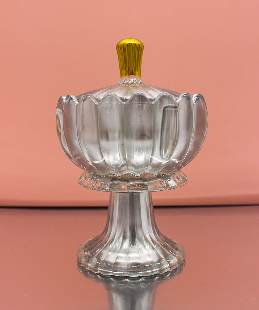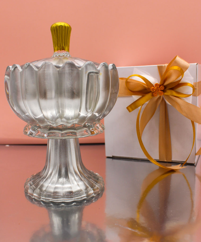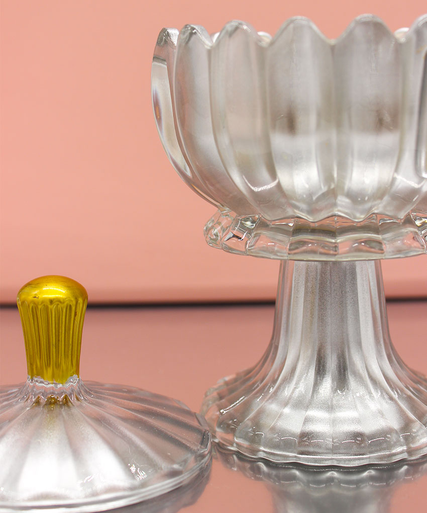 ✔ Contenitore in vetro con base ad alzatina e coperchio decorato, dal design sofisticato.