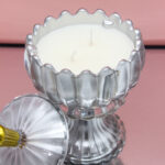 ️ Bomboniera Candela Profumata con Alzatina Argento – Eleganza in Ogni Dettaglio