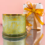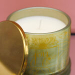 Bomboniera Candela Profumata con Contenitore in Vetro Verde e Coperchio Oro
