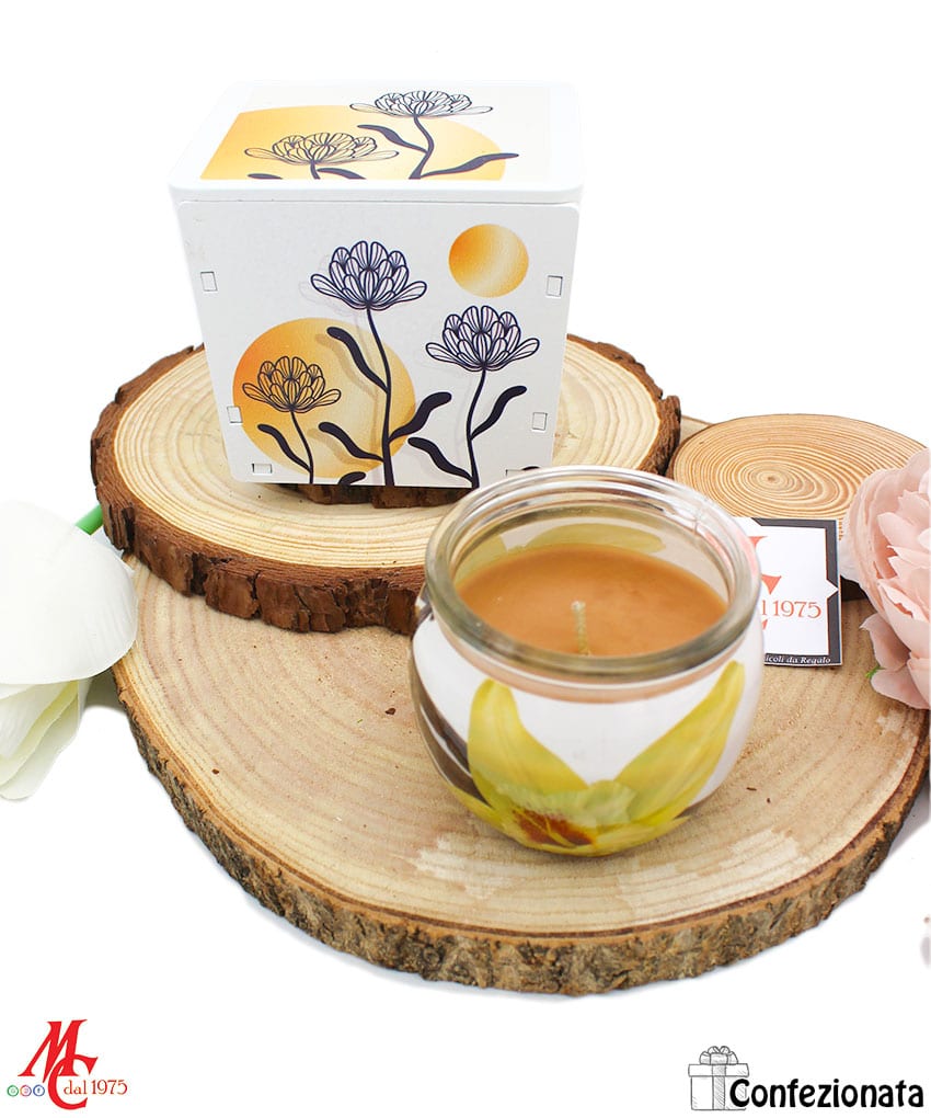 Bomboniera Candela Profumata con Custodia in Legno – Decorazione Abbinata – Completa di Confezione – Misure 10×8,5 cm