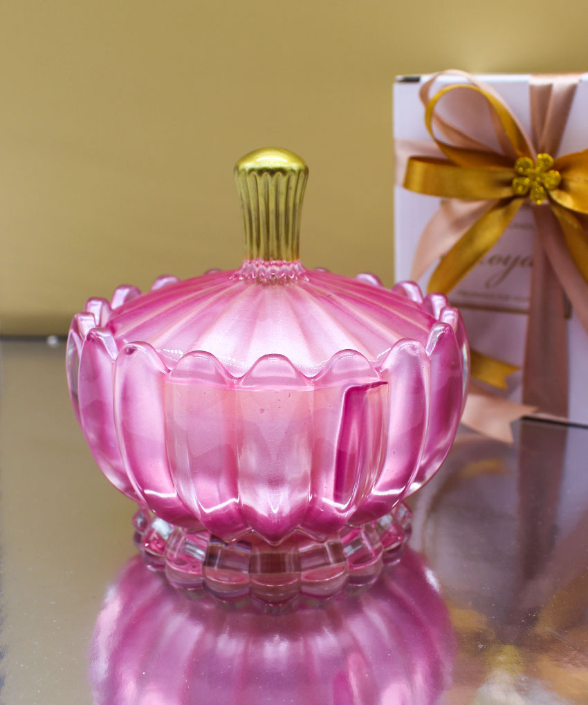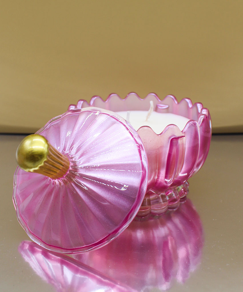 Bomboniera Candela Profumata Contenitore in Vetro Rosa