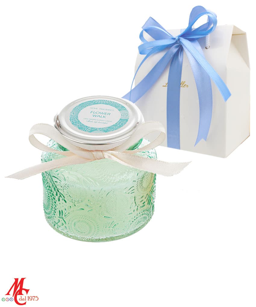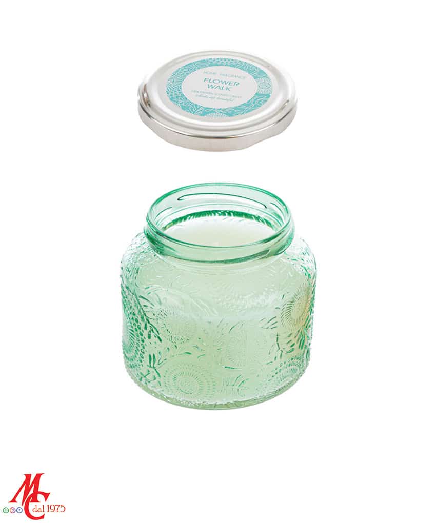 Bomboniera Candela Profumata Fragranza Flower Walk – Vasetto Vetro Verde
