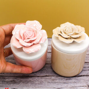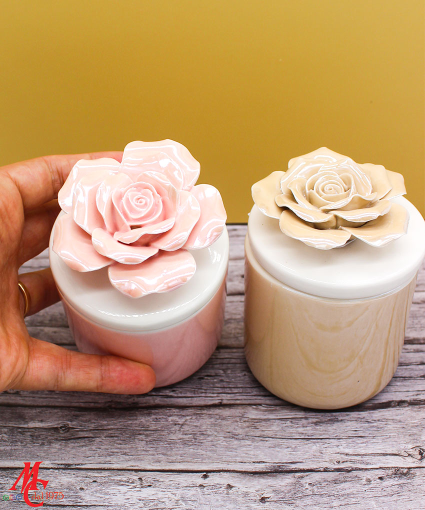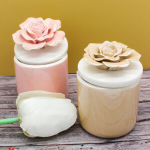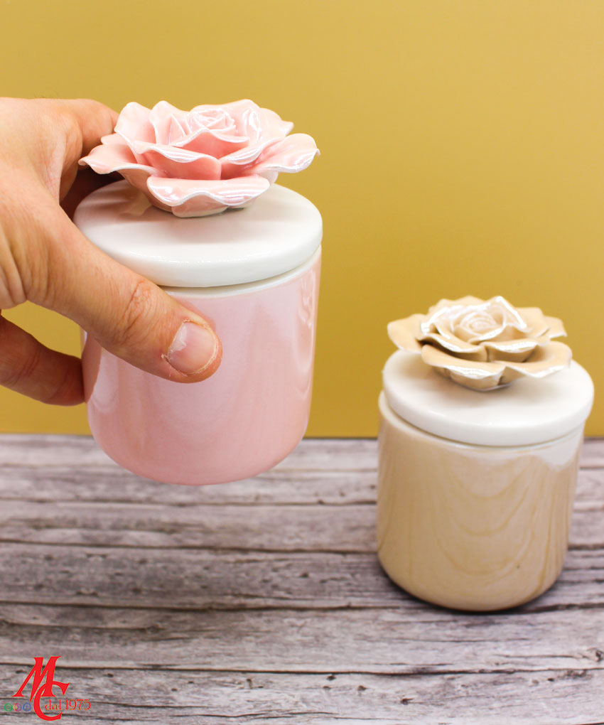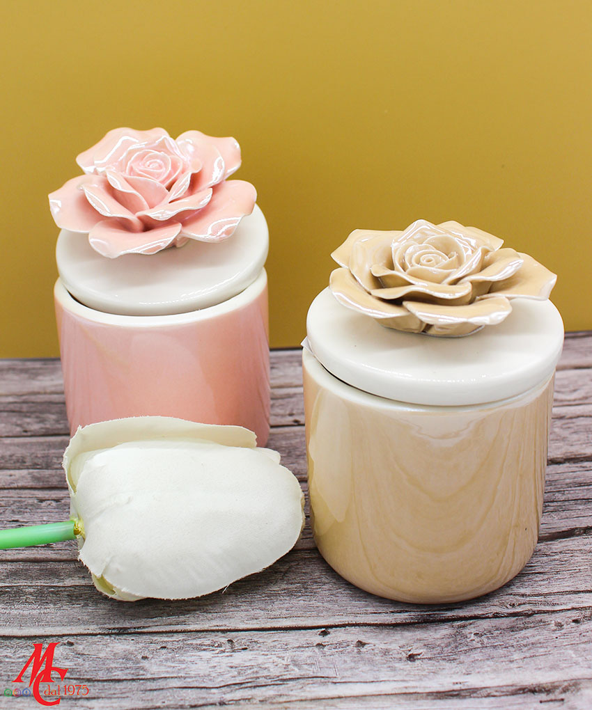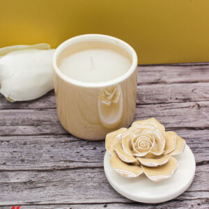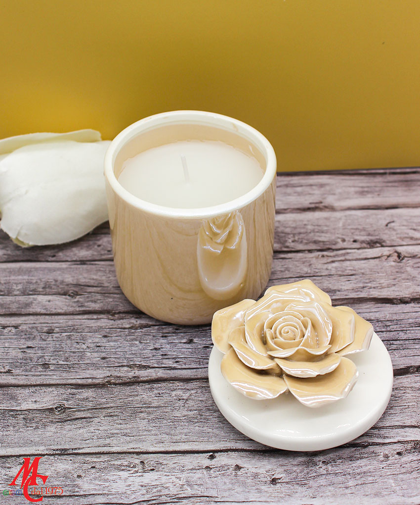 Un tocco di luce e raffinatezza in un unico oggetto: la candela racchiusa in una scatola di porcellana beige, con decoro floreale sul coperchio, è l’idea perfetta per una bomboniera elegante e ricercata.