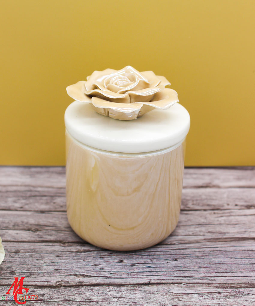 Bomboniera Candela in Scatola di Porcellana Beige – 7,5×7,5xh.10,5 cm