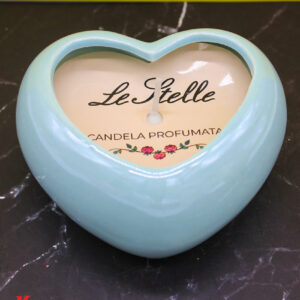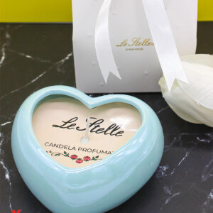 Un gesto d’amore che lascia il segno. Questa candela in cera di soia è racchiusa in un raffinato contenitore a forma di cuore in porcellana Celeste, elegante e simbolico. Le sue dimensioni di 11x10xh.5,5 cm la rendono un’idea perfetta come bomboniera per nascita, battesimo o matrimonio.
