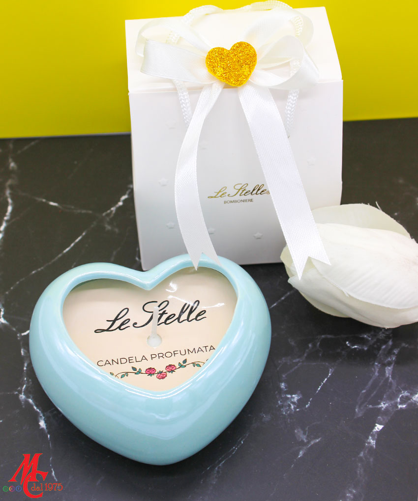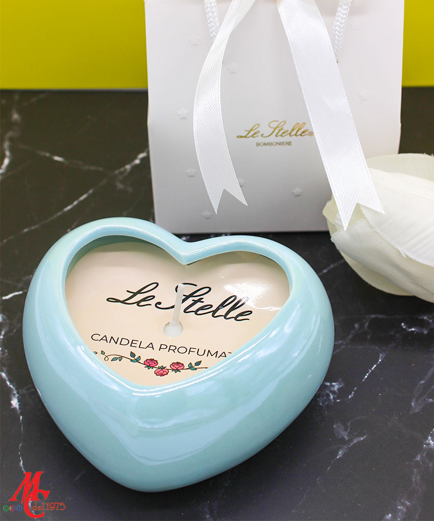 Bomboniera Candela Soia Cuore Porcellana Celeste