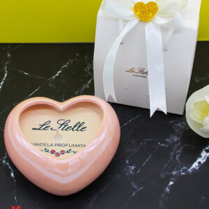 Un gesto d’amore che lascia il segno. Questa candela in cera di soia è racchiusa in un raffinato contenitore a forma di cuore in porcellana Rosa, elegante e simbolico. Le sue dimensioni di 11x10xh.5,5 cm la rendono un’idea perfetta come bomboniera per nascita, battesimo o matrimonio.