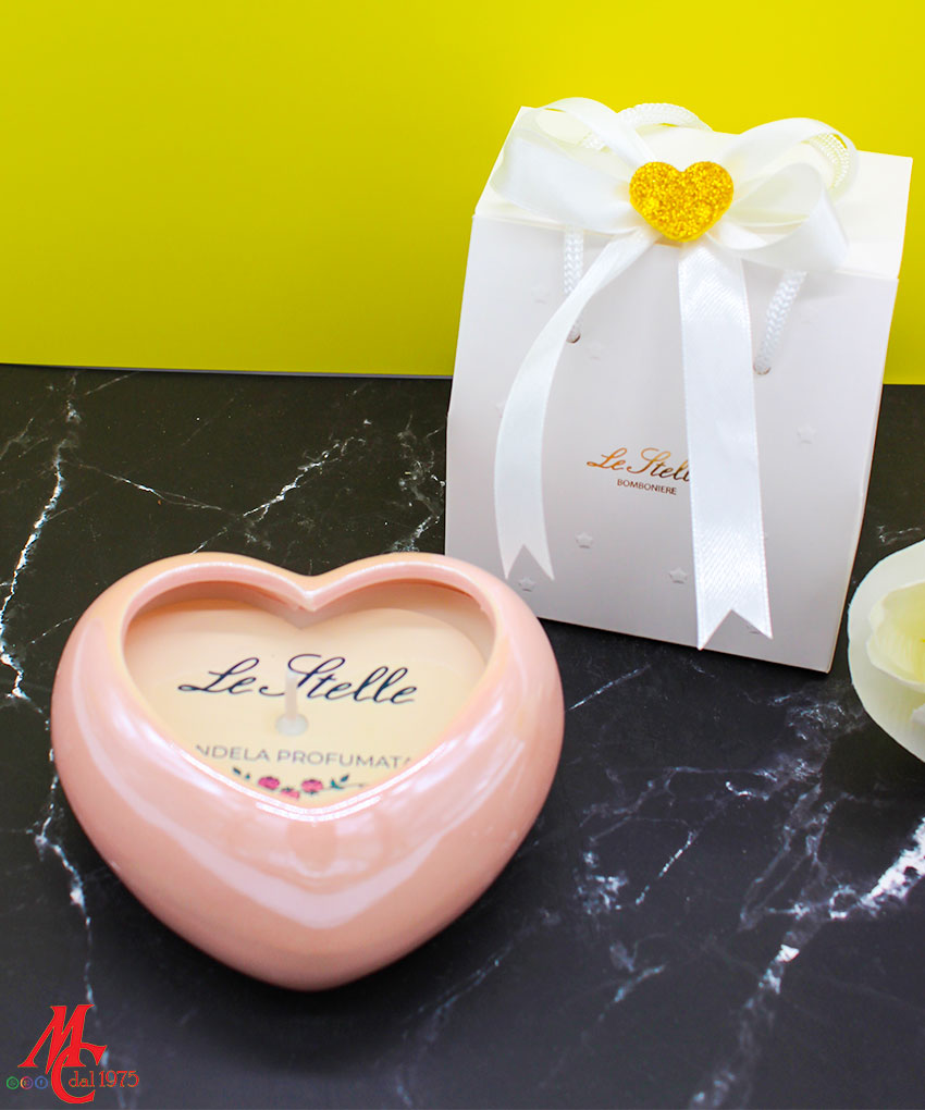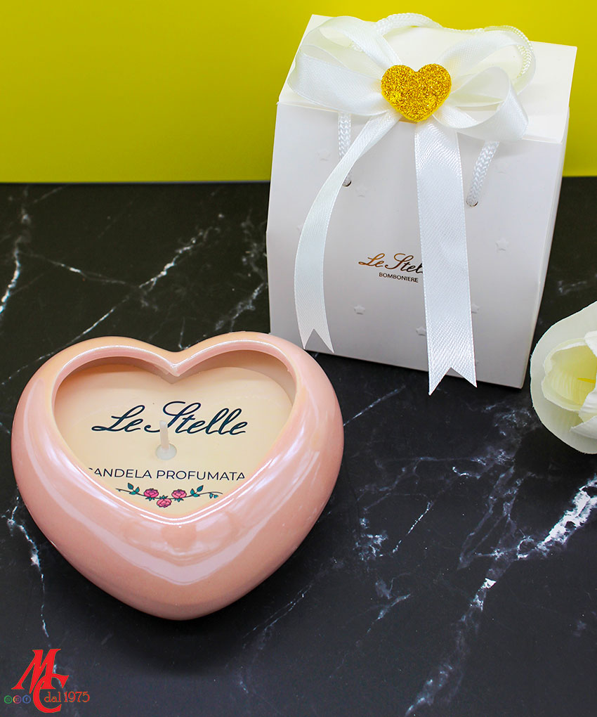Bomboniera Candela Soia Cuore Porcellana Rosa