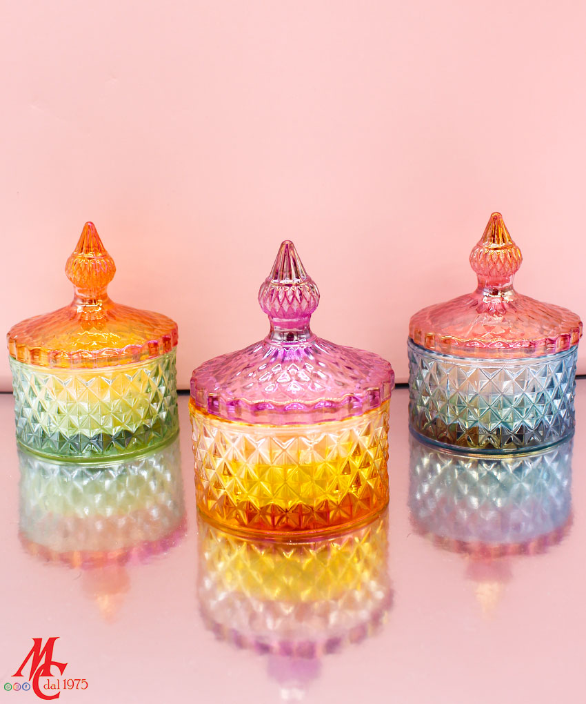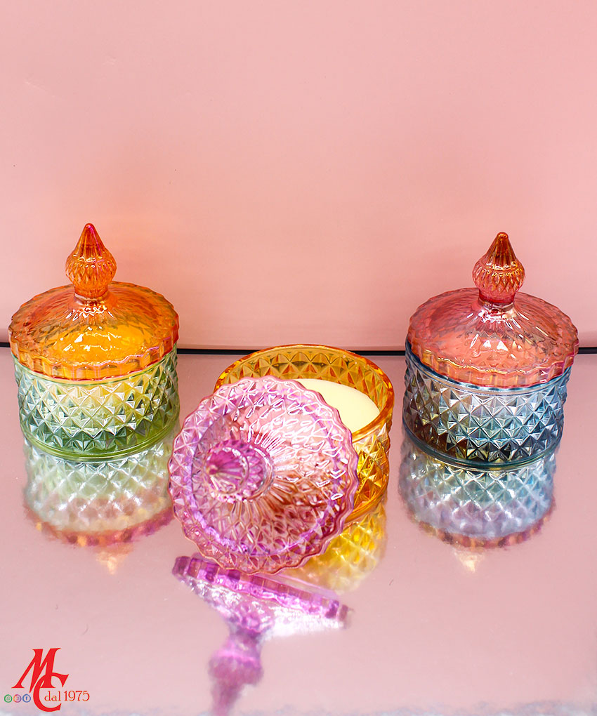 Materiale: Vetro – Cera di Soia | Colore: Multicolore