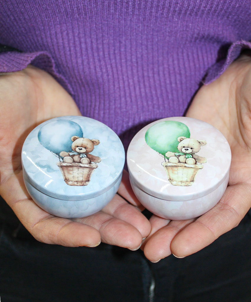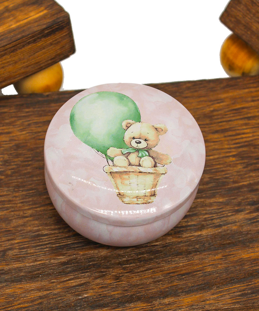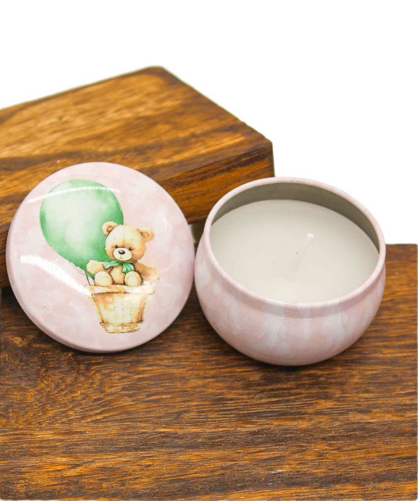 Mini Candela in Latta Tema Orsetto Rosa – Bomboniera per Nascita e Battesimo