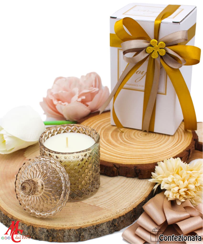 Bomboniera Candela 7×11 cm – Colore Tortora, Completa di Confezione