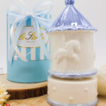 Bomboniera Carillon Giostrina in Porcellana Celeste – Firmata Le Stelle