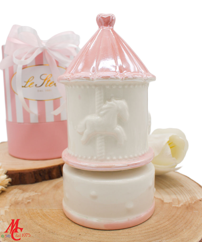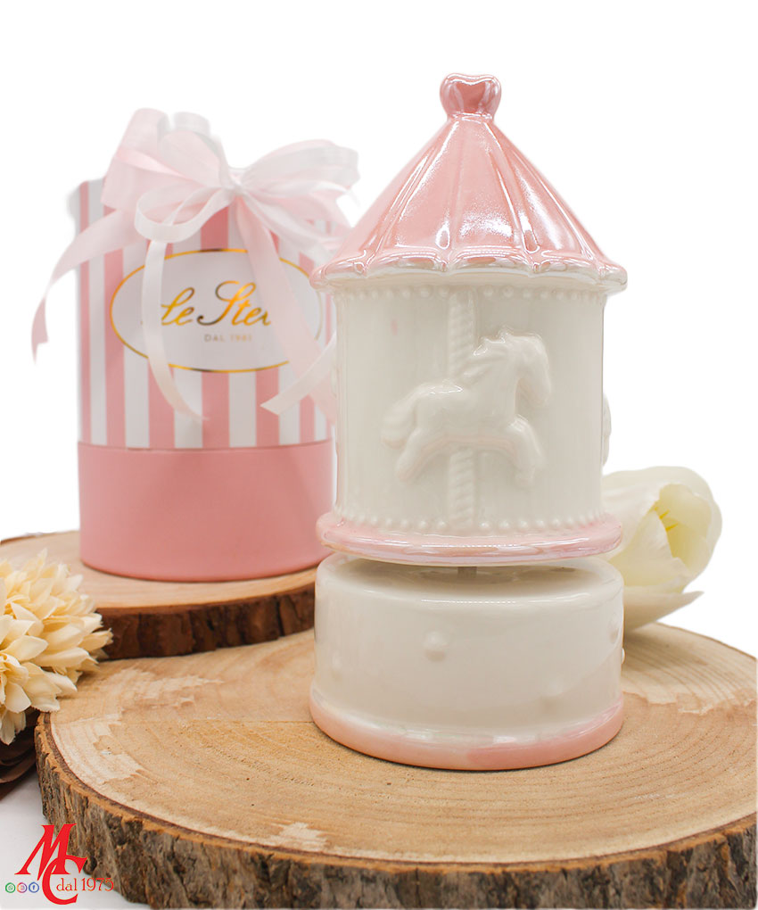 Bomboniera Carillon Giostrina in Porcellana Rosa – Firmata Le Stelle