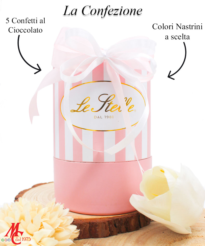 - Confezione inclusa: Sì – astuccio cilindrico, nastrini e confetti