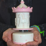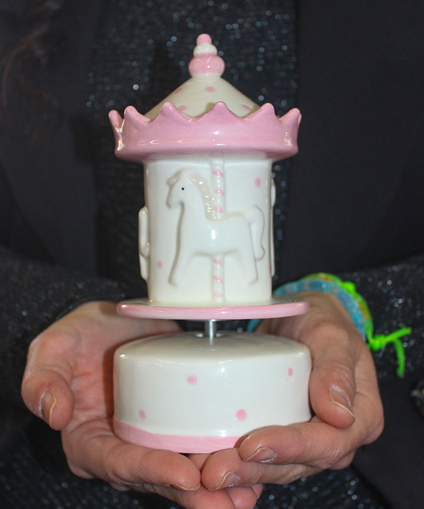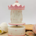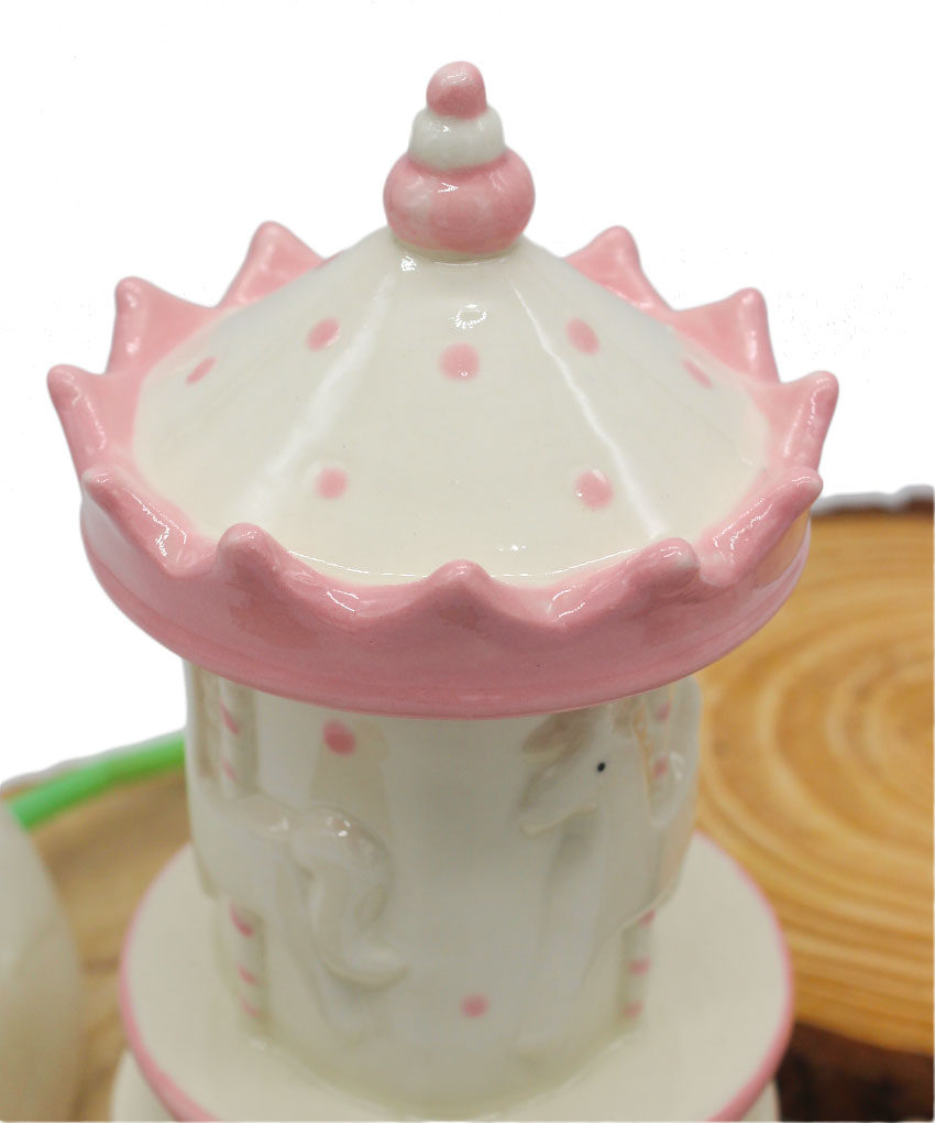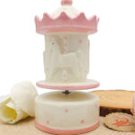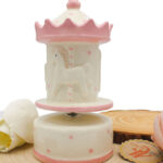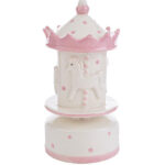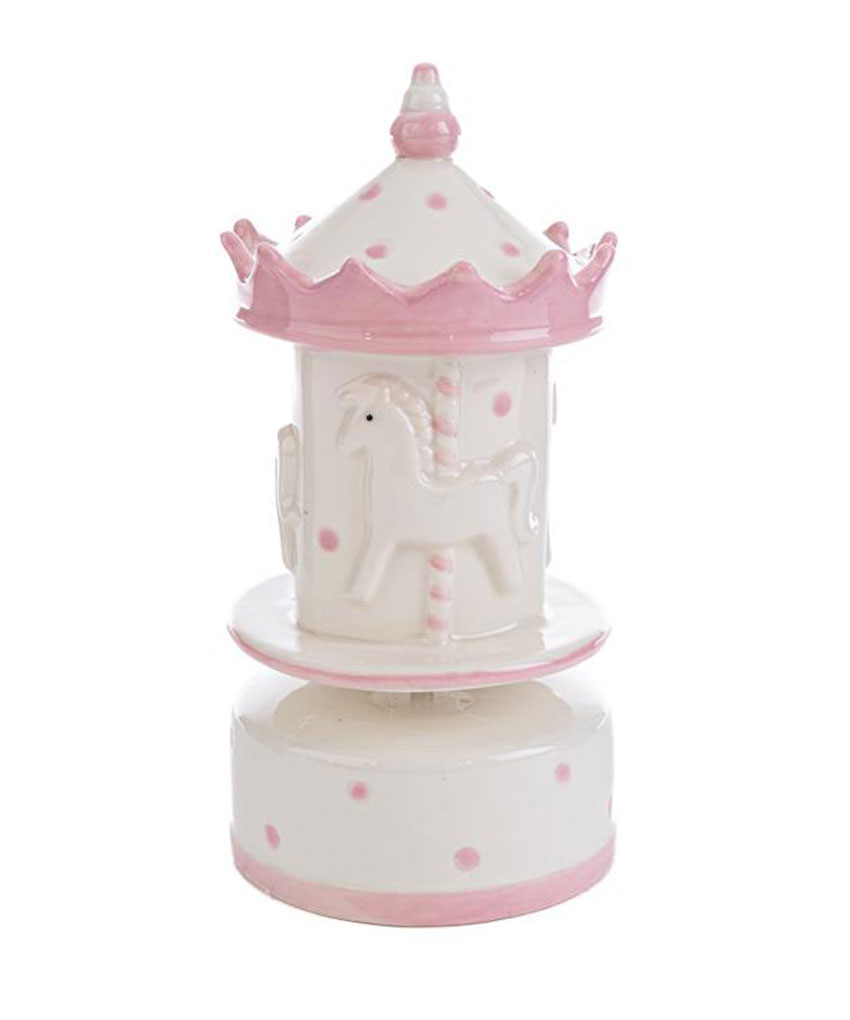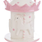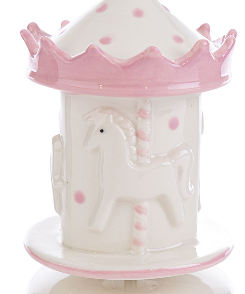 Realizzata in porcellana finemente decorata, presenta una graziosa giostrina che ruota dolcemente accompagnata da una melodia classica, rendendola ideale anche come decorazione per la cameretta.