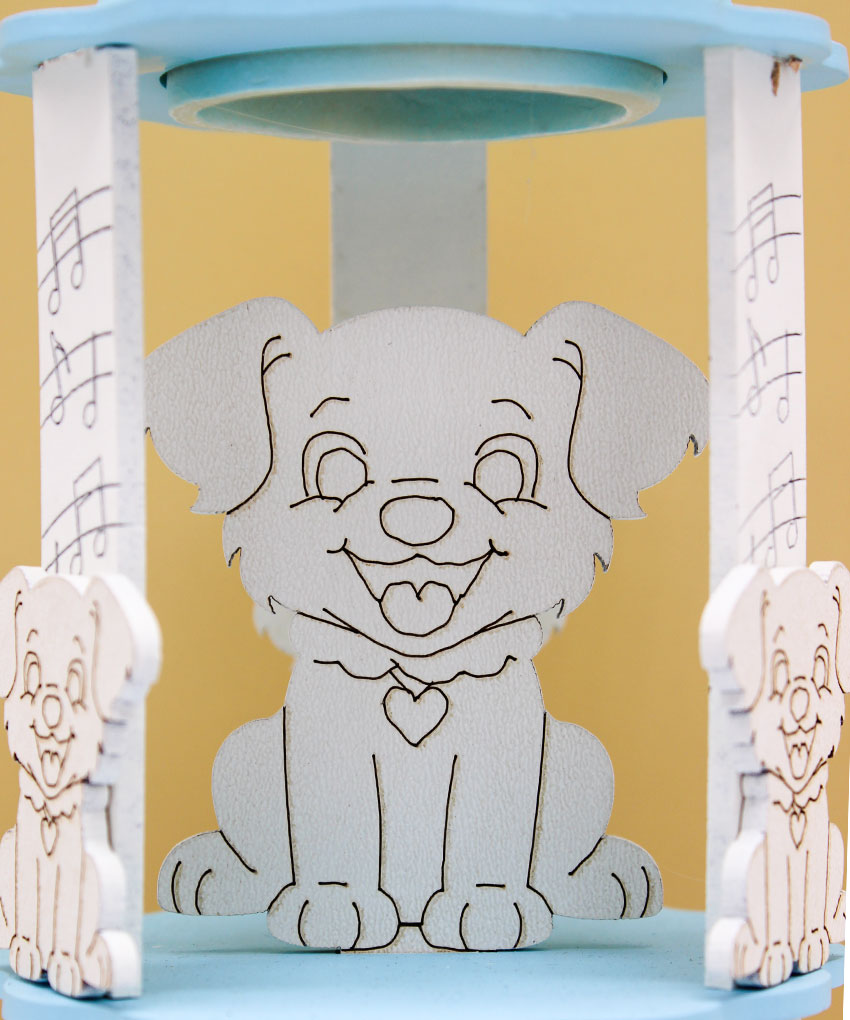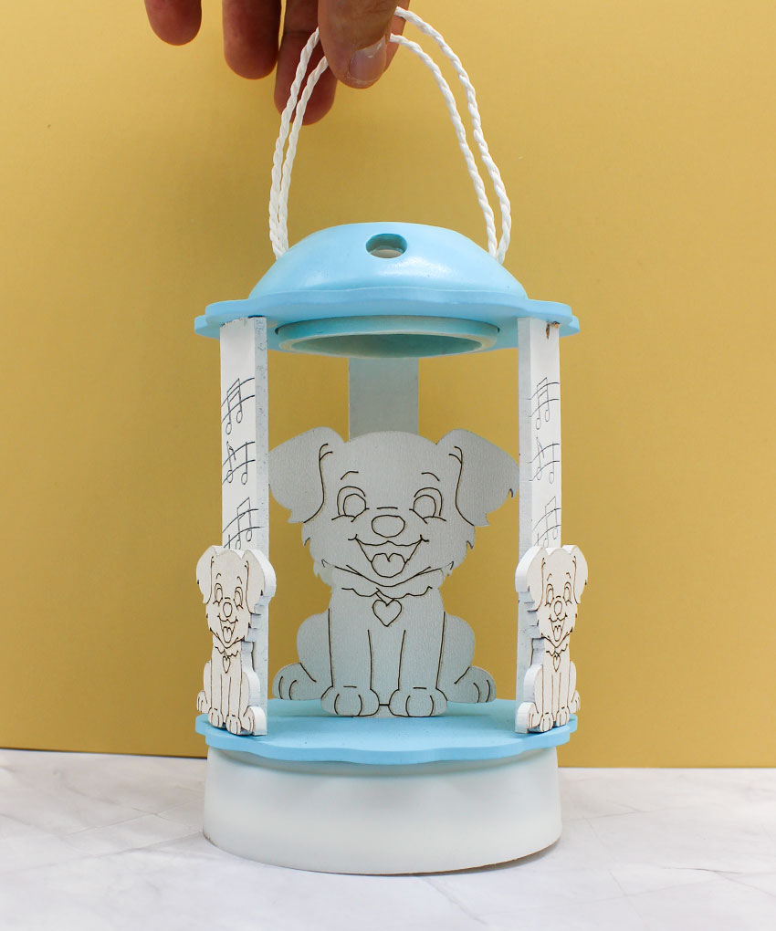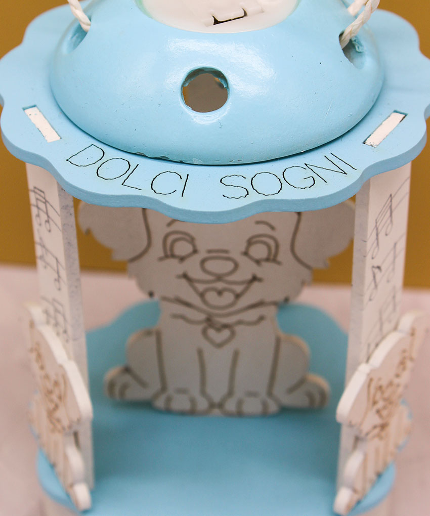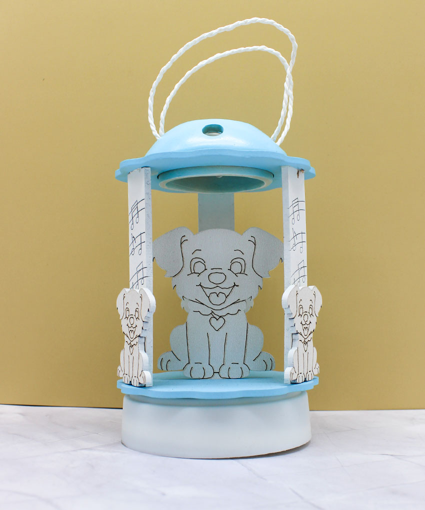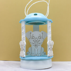 Bomboniera Carillon Lanterna a Luce LED con Cagnolino – Colore Celeste
