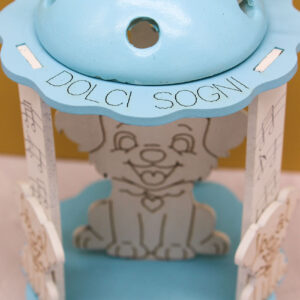 Dolce e originale, la bomboniera carillon lanterna con luce LED e cagnolino è perfetta per celebrare nascita, battesimo o eventi dedicati ai più piccoli. Il delicato colore celeste dona freschezza ed eleganza, rendendo questo articolo un ricordo tenero e speciale da conservare nel tempo.