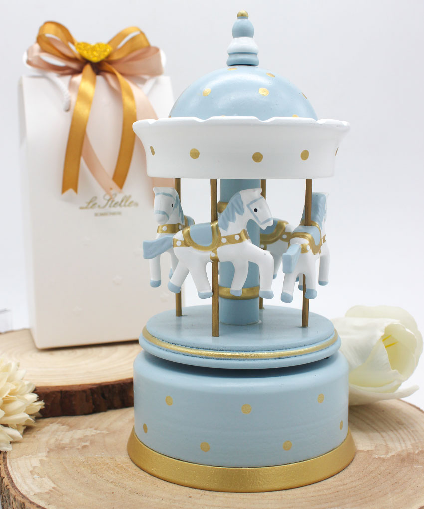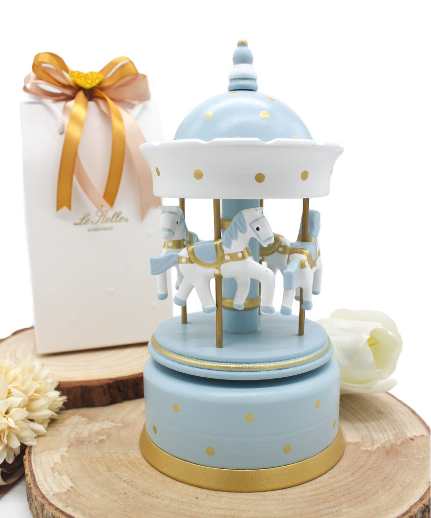 Bomboniera Carillon in Legno Giostrina Celeste – Eleganza e Dolcezza per Battesimo