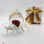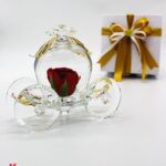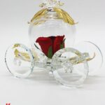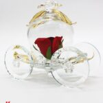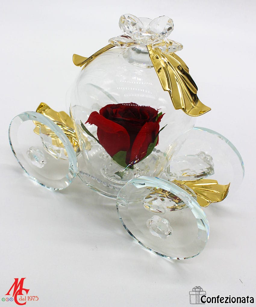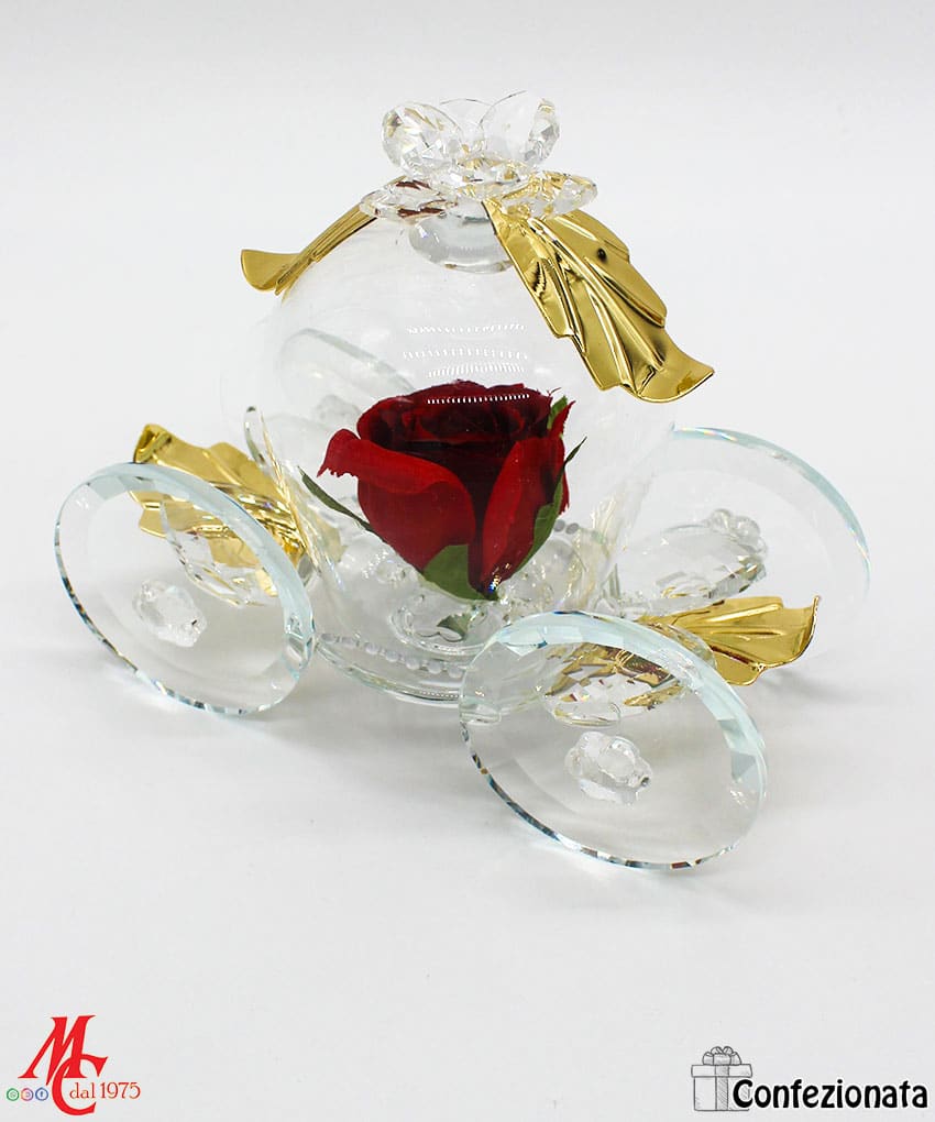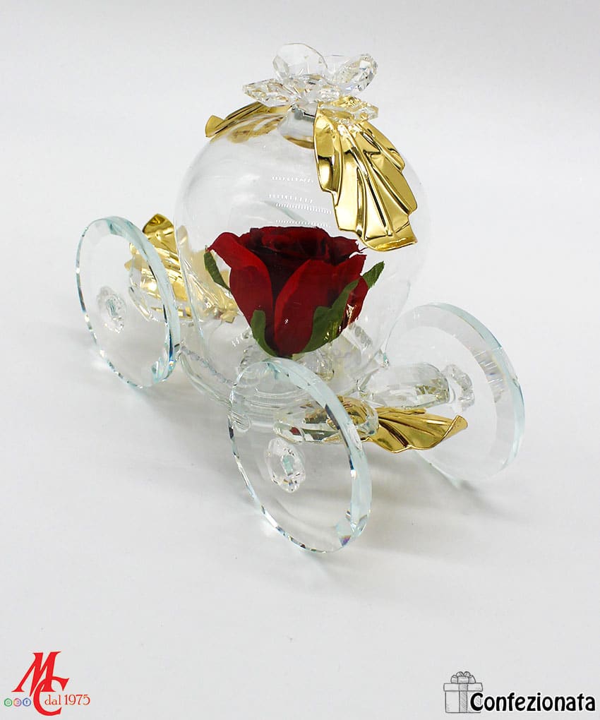 Bomboniera Confezionata – Carrozza Cristallo – Rosa Rossa e Foglie Oro