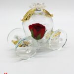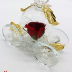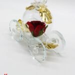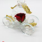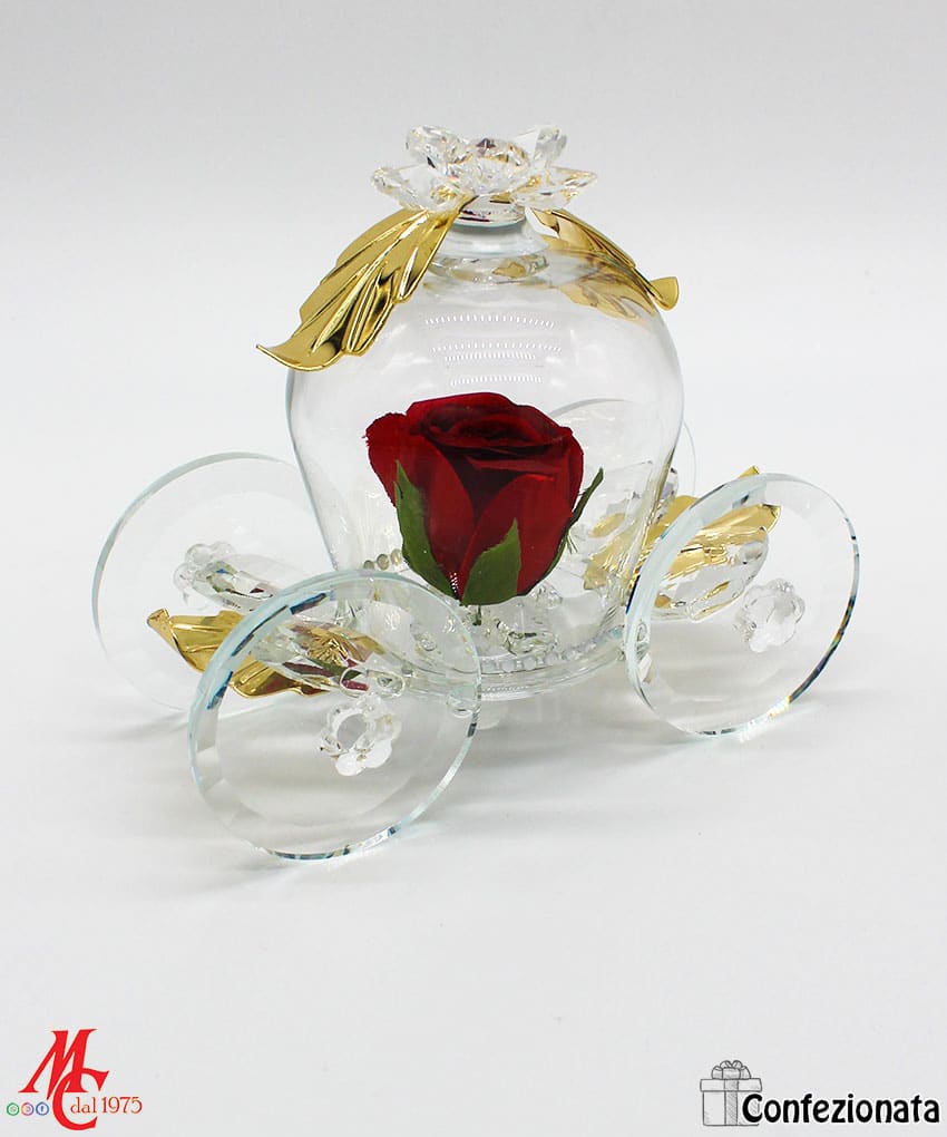 Bomboniera – Carrozza Cristallo – Rosa Rossa e Foglie Oro