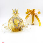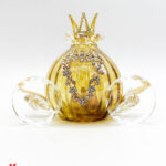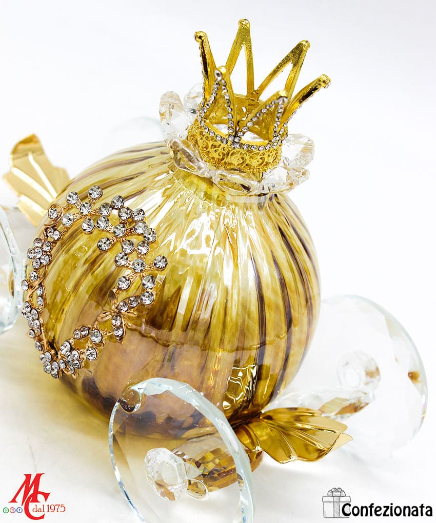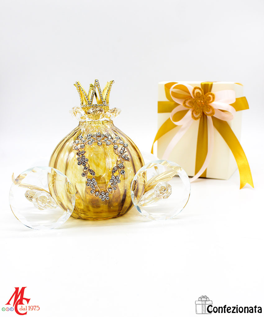 Bomboniera Confezionata – Carrozza in Vetro Artistico Tortora dettagli Oro