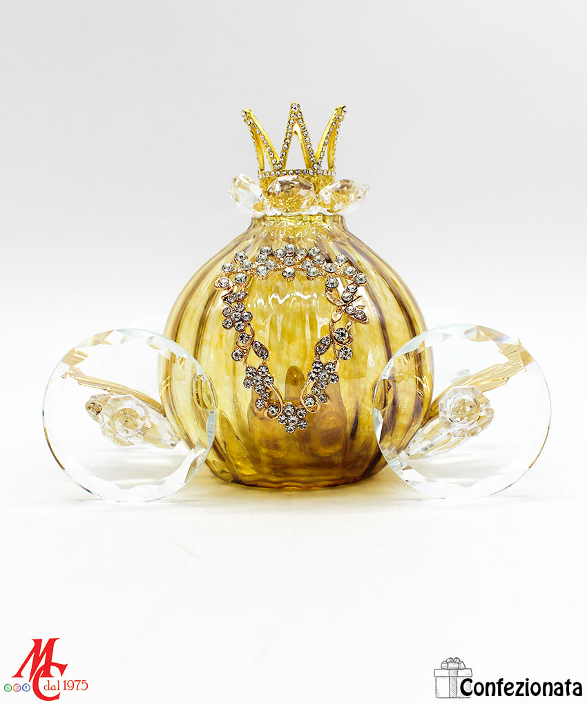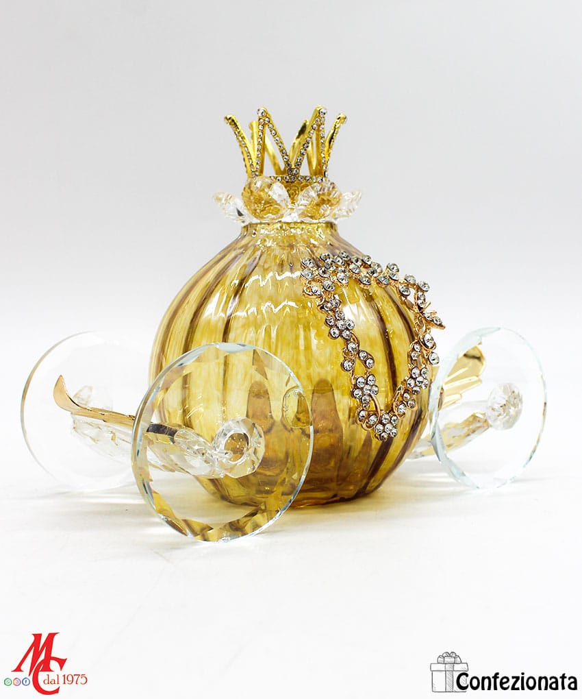 Recensisci per primo “Bomboniera – Carrozza in Vetro Artistico Tortora e Oro”