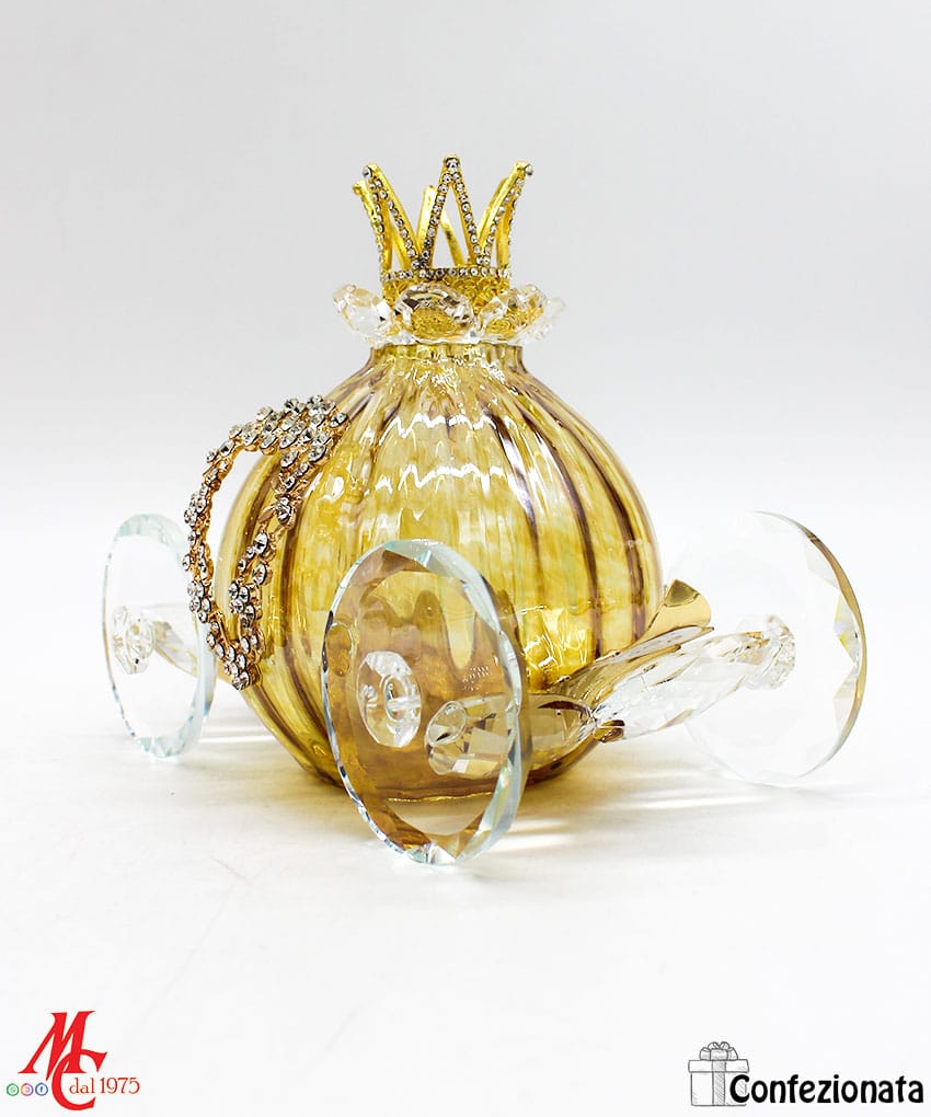 Bomboniera – Carrozza in Vetro Artistico Tortora e Oro