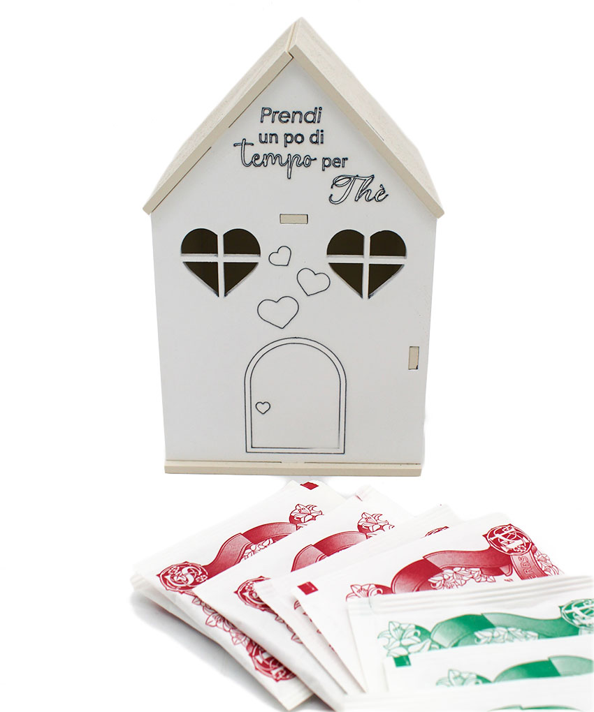 Un’idea originale, utile e dal design delicato: la bomboniera casetta distributore di tè o tisane è la scelta perfetta per chi desidera regalare qualcosa di funzionale e raffinato, mantenendo uno stile semplice ed elegante. Realizzata in legno intagliato al laser, questa bomboniera è pensata per sorprendere e conquistare ogni ospite.
