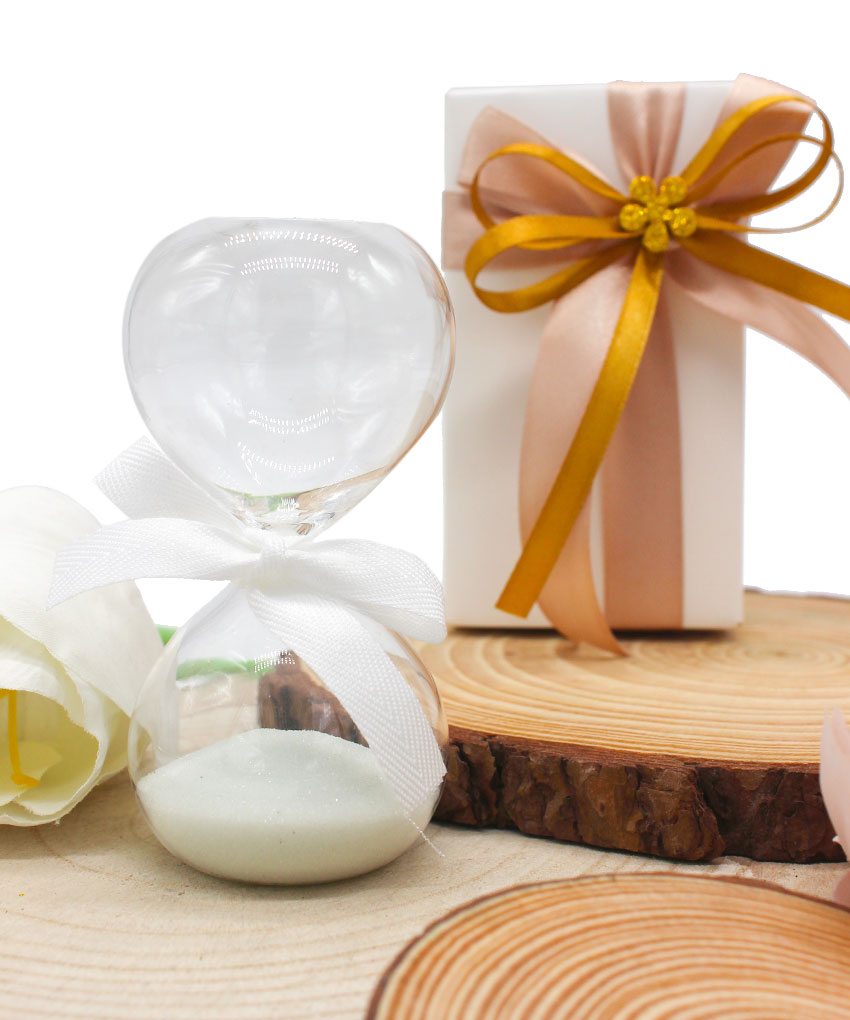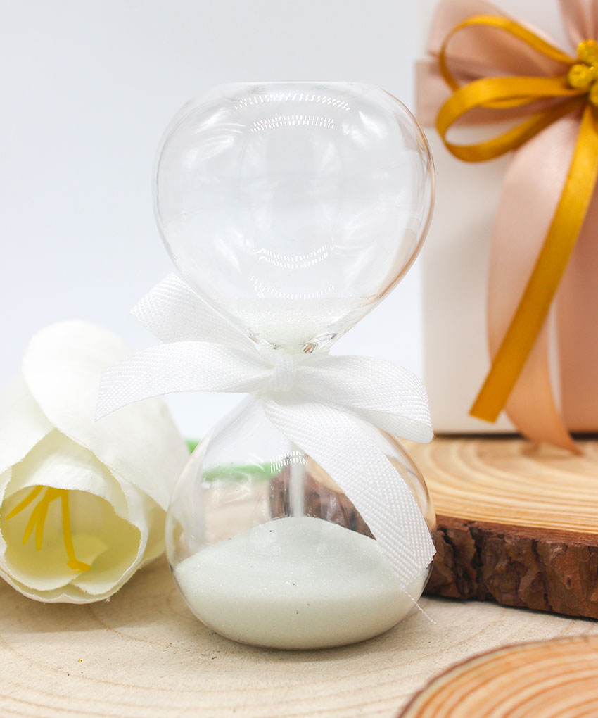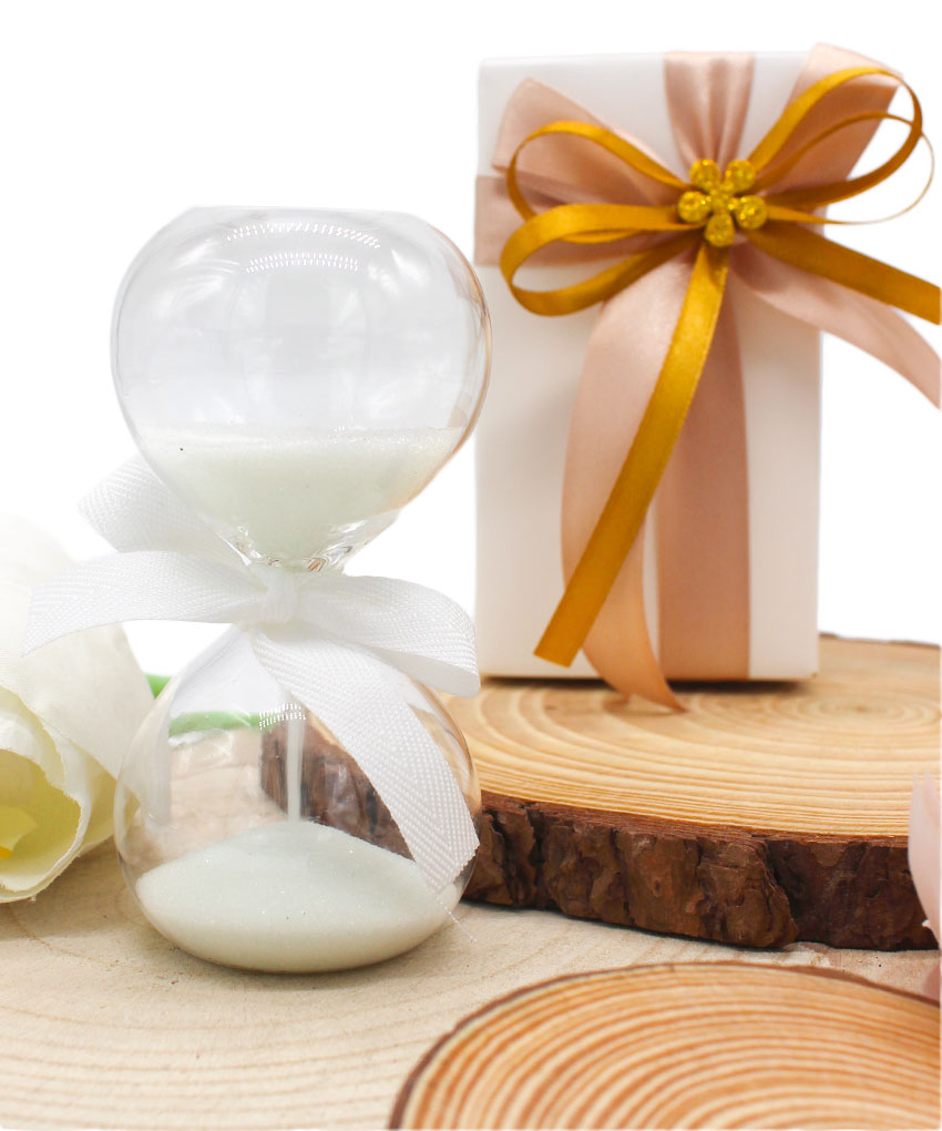 Celebra i momenti più preziosi con eleganza grazie alla nostra bomboniera clessidra bianca. Simbolo del tempo che scorre e dei ricordi indelebili, questa raffinata clessidra è perfetta per matrimoni, anniversari e cerimonie speciali.