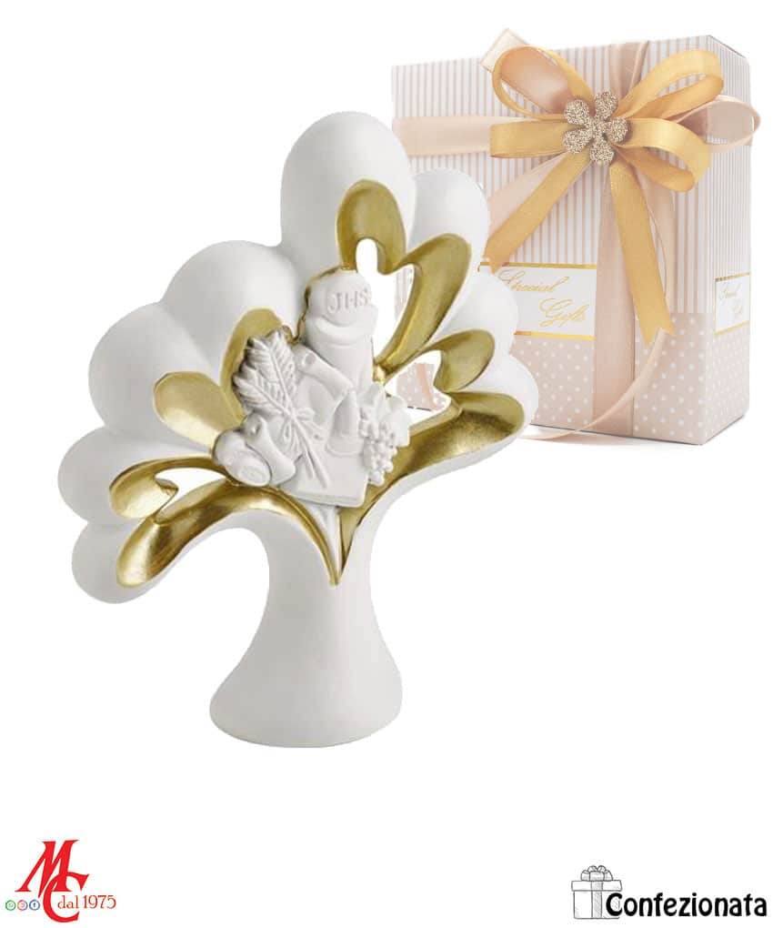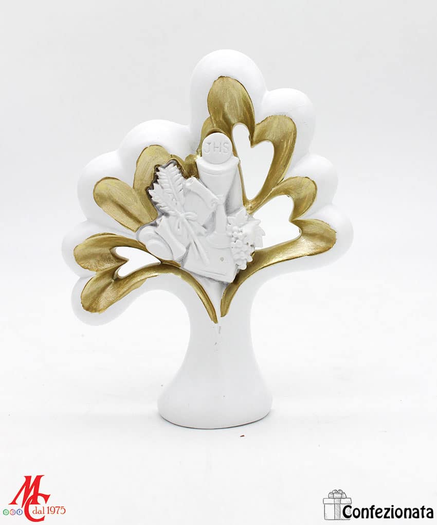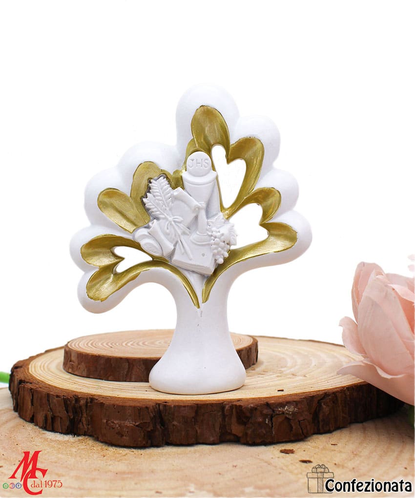 Bomboniera Comunione Albero Bianco/Oro con Calice H.12 cm – Eleganza e Dolcezza