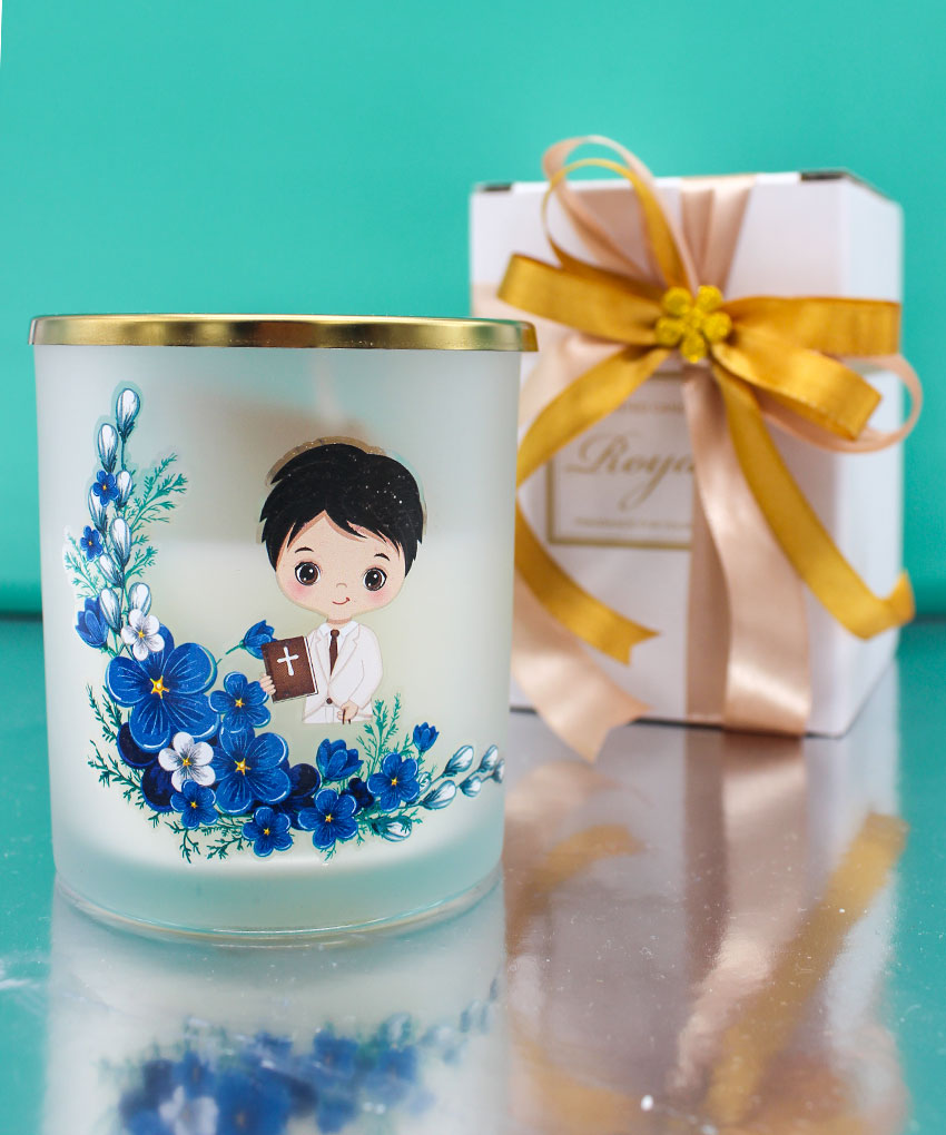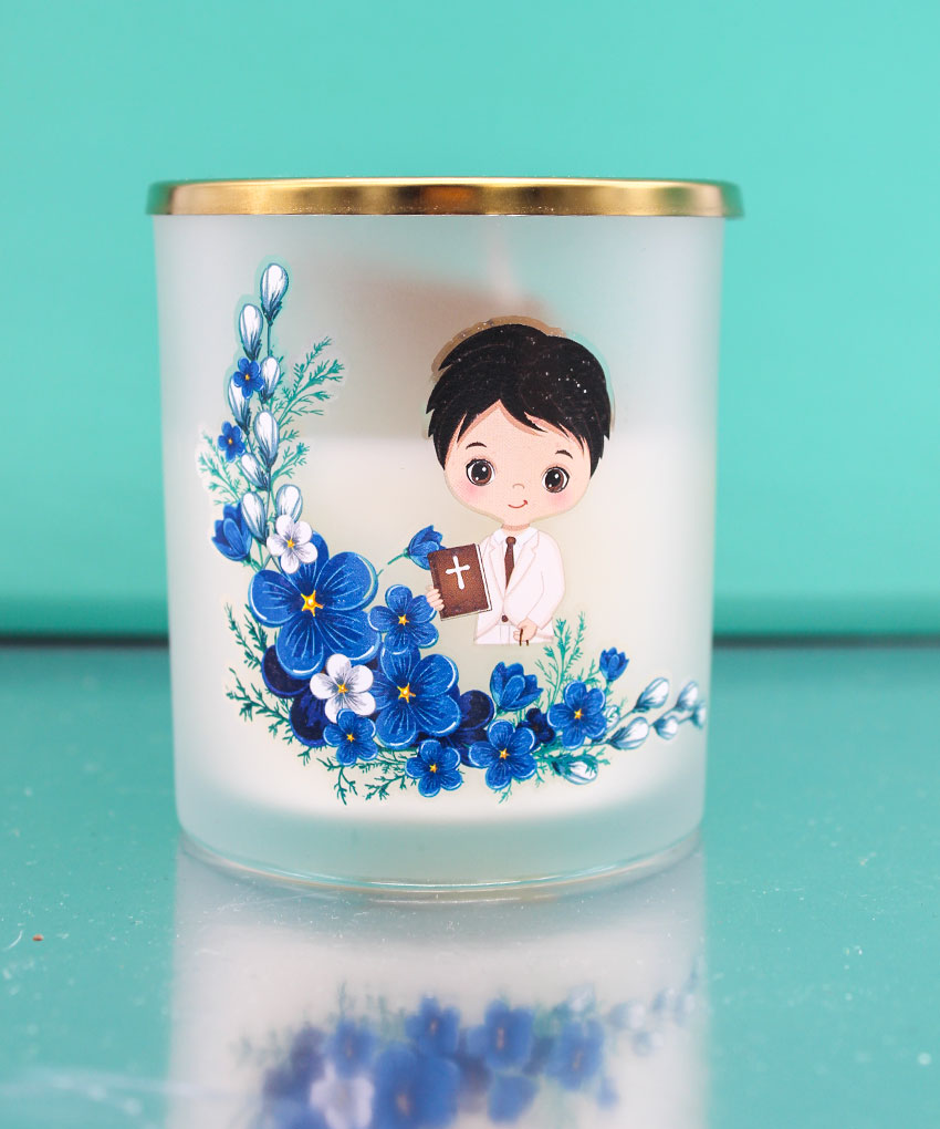Se stai cercando una bomboniera per la Prima Comunione che unisca eleganza e significato, questa candela con immagine di un bambino in preghiera è la scelta perfetta. Un ricordo speciale che simboleggia un momento unico nella vita del tuo bambino, ideale anche per la Cresima.